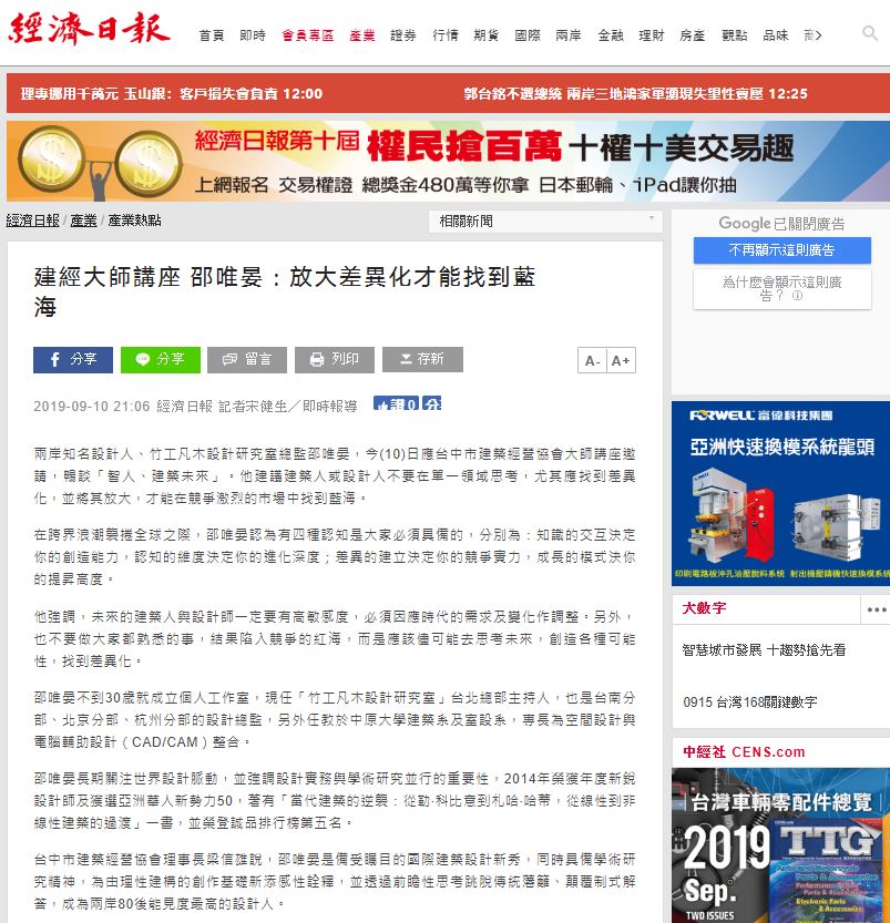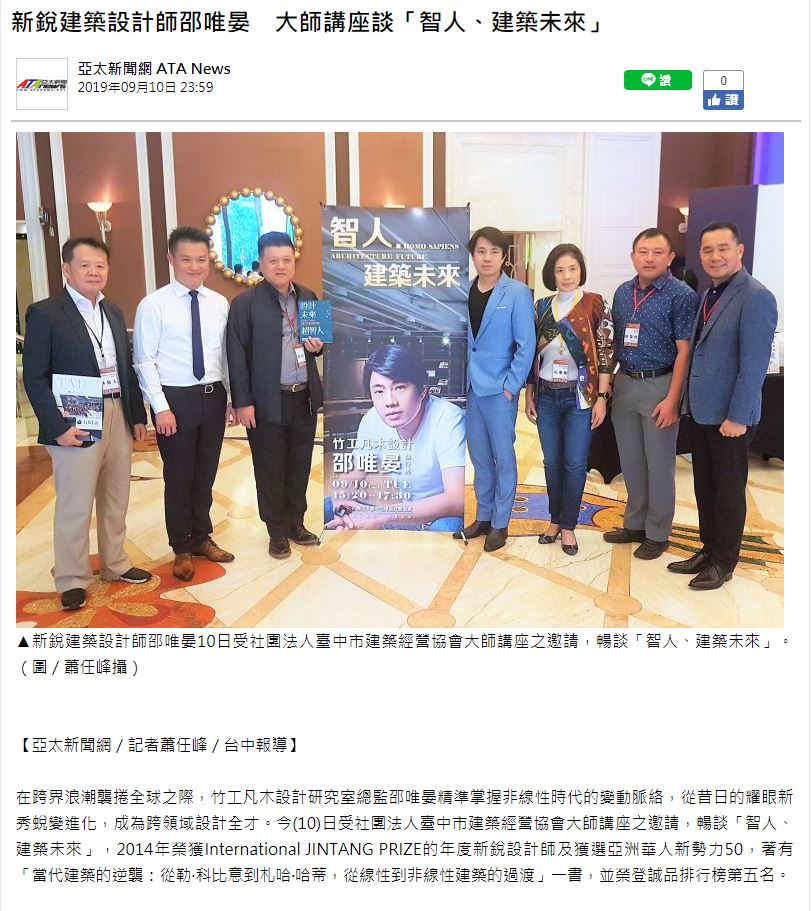 快訊|台中市建築經營協會大師講座:「智人、建築未來」