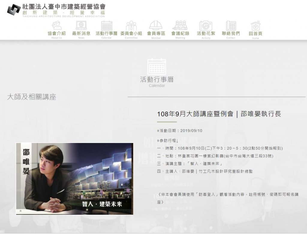感謝台中市建築經營協會的邀請,邵老師於建經大師講座分享