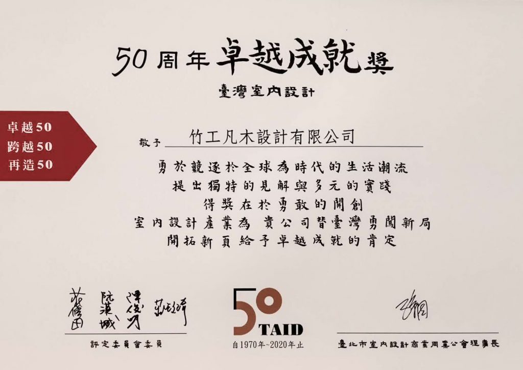 恭喜竹工凡木團隊榮獲台灣室內設計50周年卓越成就獎,辛苦各個持續的付出與進化