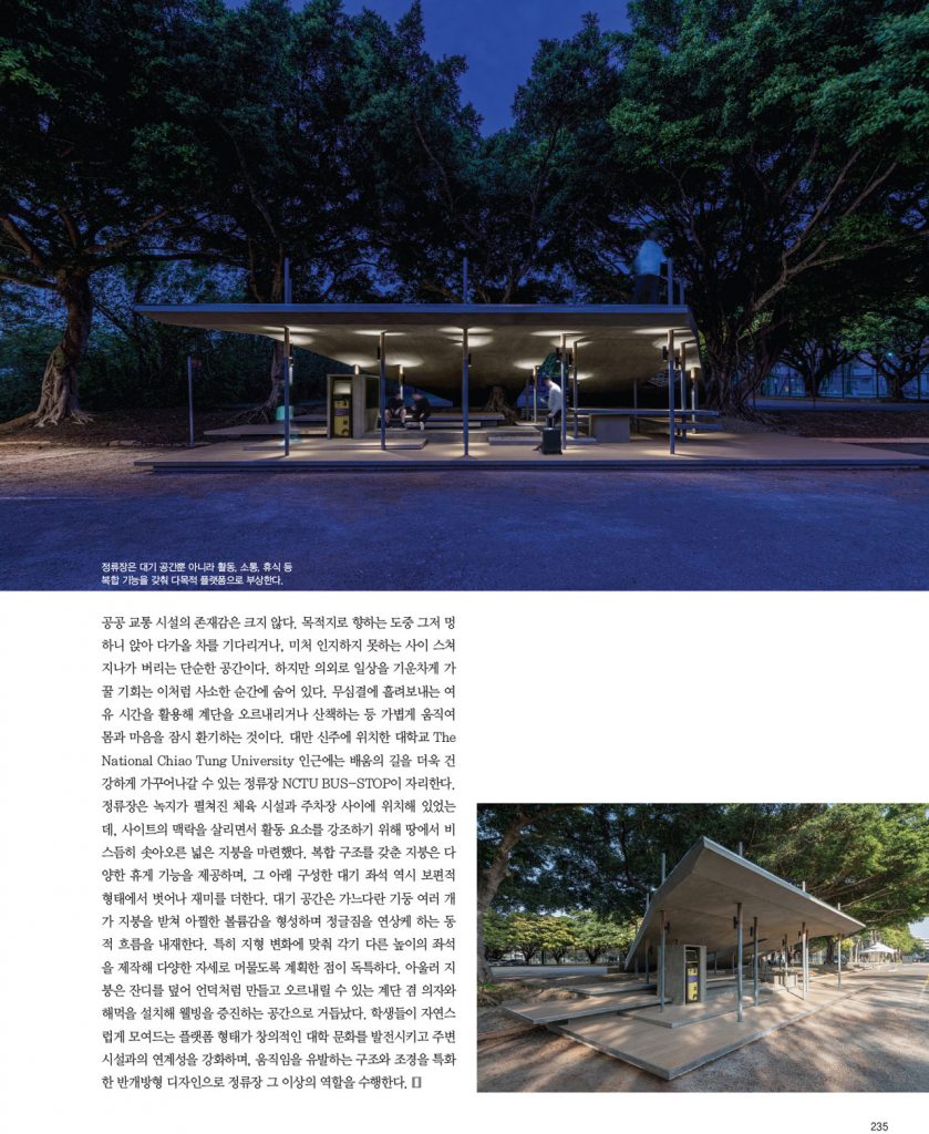 「交大候車亭」再次登上韓國媒體囉!將有機會於 < INTERNI & Decor > 雜誌四月號看見它的身影了~讓我們一起回顧位於新竹風城的地景性「平台」,在候車等待之餘,體驗來自周圍環境、校園活動所帶來的多元對話。