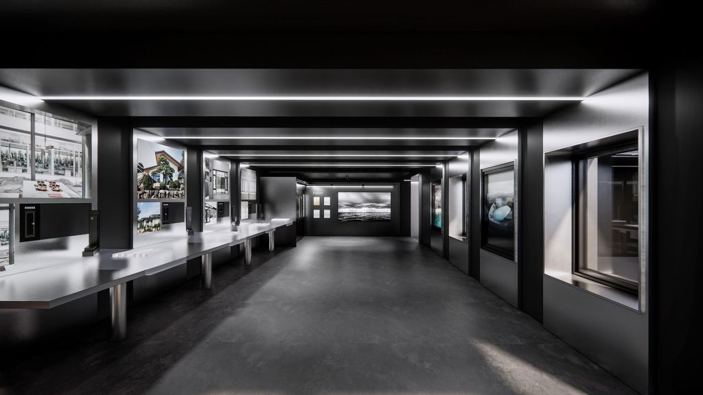 台中總部展廳設計融合榫卯工藝與多材質交替,以環形動線串聯三大展區。步入接待區,首先映入眼簾的是像徵品牌初期的木藝展廳,展現品牌對傳統手工藝的敬重和父輩對兒子傳承匠心精神的殷切期望;隨後的“時光廊道+ BK學院”展現了品牌在設計與研發中的累積與傳承,象徵技藝的薪火相傳;接著進入二代鋁門窗展廳,展現技藝在每一代產品中的進化與優化,最後來到三代智慧AI窗展廳,展現品牌擁抱未來、引領智慧家居潮流的創新精神。