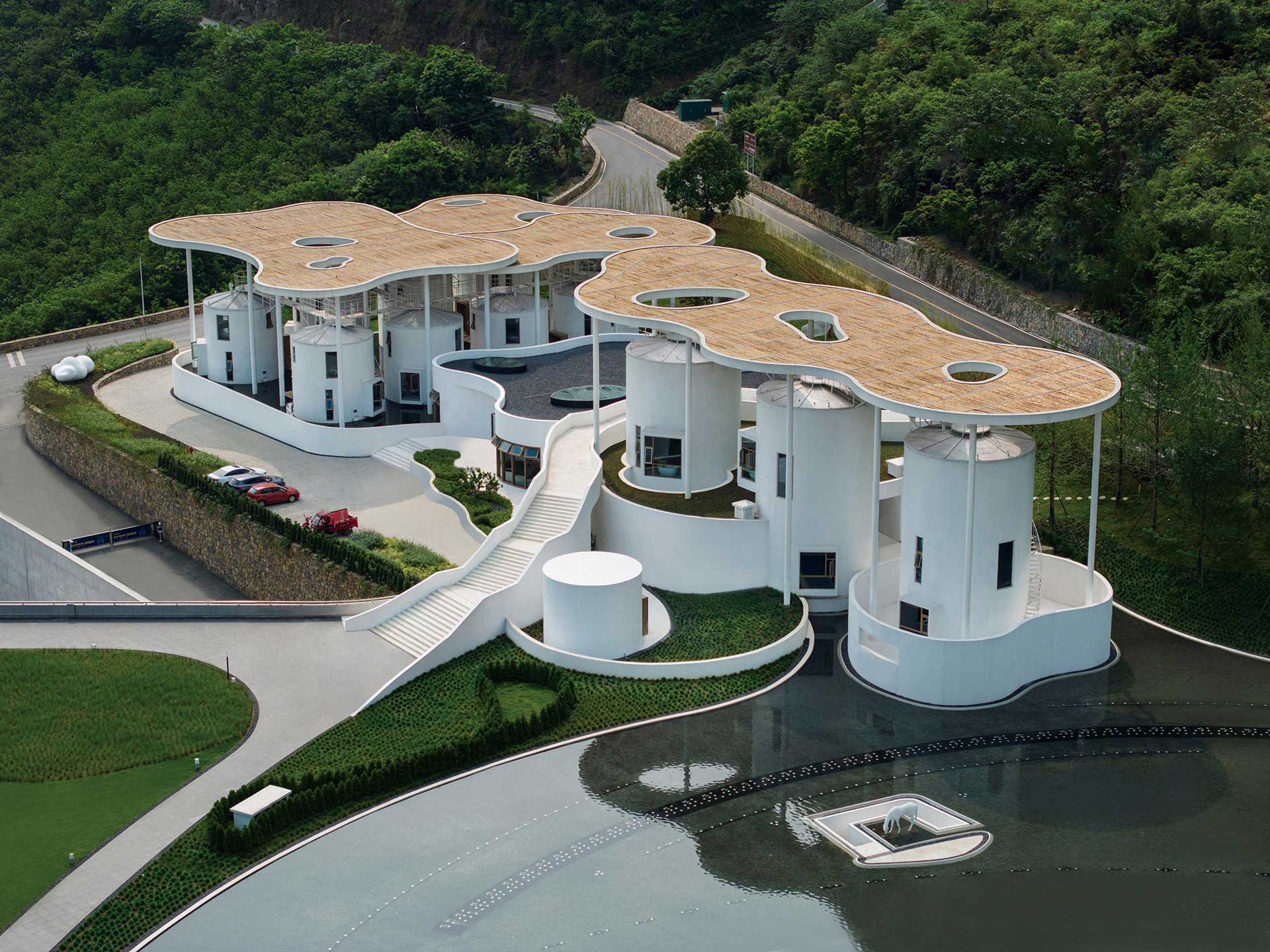 郎酒莊園二期酒歌廣場位於四川瀘州二郎鎮,是郎酒集團的大型造酒基地。設計包含食堂、美術館、特色民宿、文創街區和懸崖酒吧五大模組,旨在打造國際視野的全球性設計規劃案。竹工凡木團隊保留舊酒槽等文化遺構,以新舊合璧的設計手法,重新定義白酒釀造核心區域的價值。採用有機曲線設計的建築造型,輕量化、去邊界化地融入赤水河畔的自然景觀。在「關係論」的設計思維之下,探索建築與自然、情感和商業的和諧關係,創造出極具包容性與連接性的空間新物種。