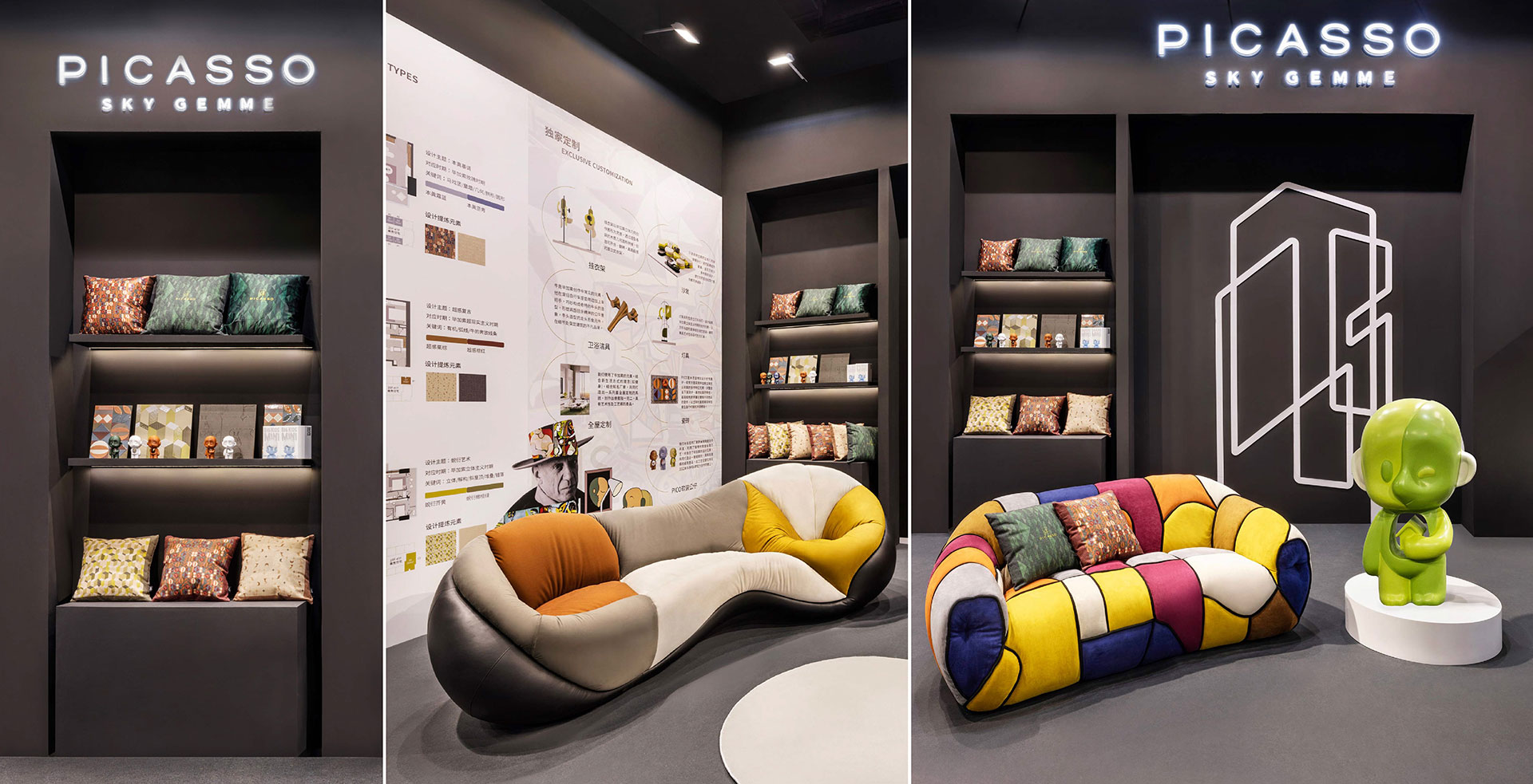 「誤用造物」作為展示核心理念,創造許多品牌跨界碰撞的機會。在潮玩藝領域聯合台灣哈玩具、南航文創等品牌,潮藝術領域則與大藝博ONLINE、星際熊合作。在潮生活部分,除了如薩米特磁磚的藝術花磚、JUSTIME巧時代衛浴的蟲洞夢境等以畢卡索為題的「誤用造物」聯動,亦結合歐羽全屋定制、融藝與ABOUT J三大品牌的「藝術家空間」,體現定制櫃體、畫作、原創沙發與潮品服飾的完美結合。