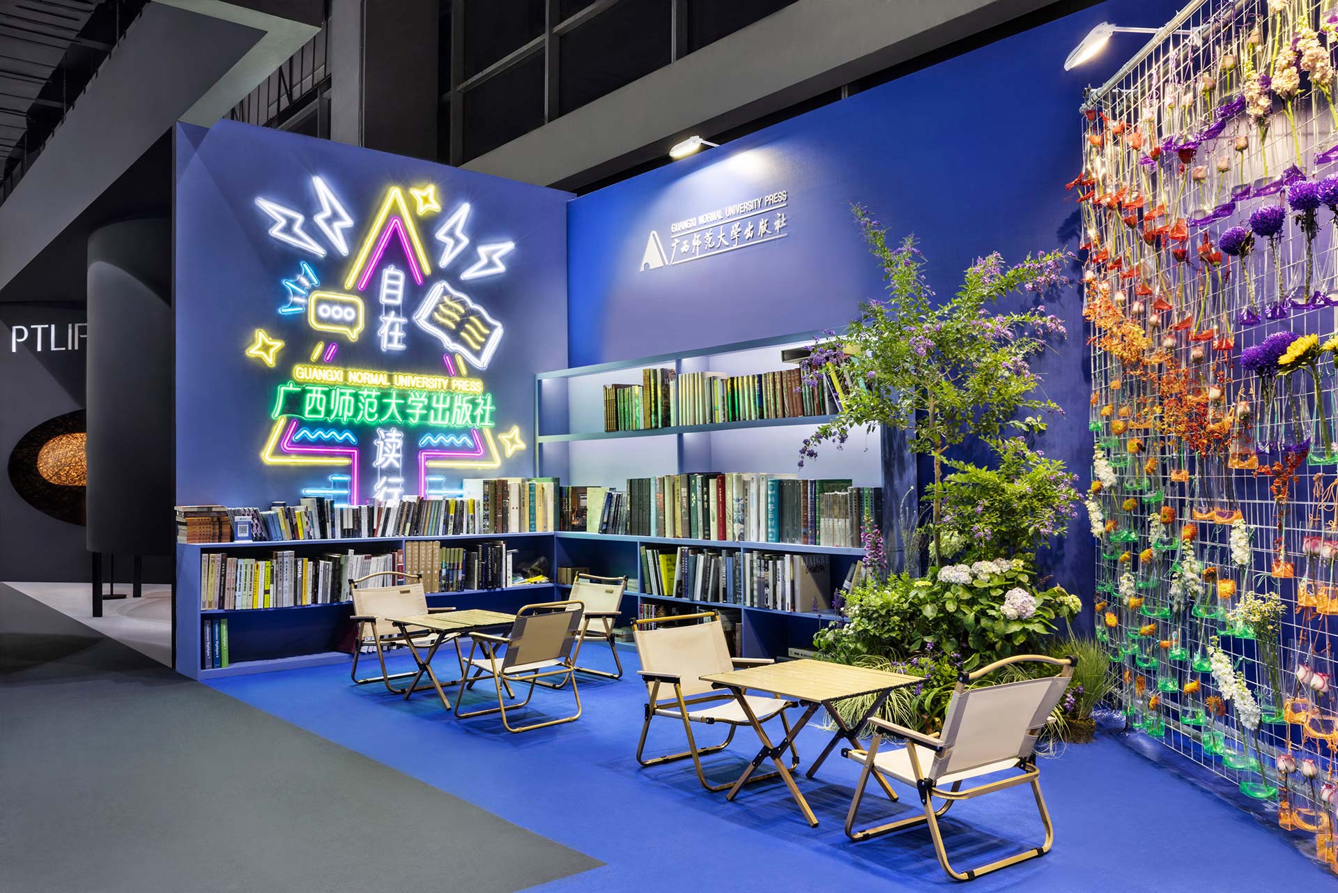 森鷹窗業携手咖啡品牌,將陽光房打造成「窗邊咖啡館」,讓自然雲朵模擬親近自然的體驗。德國凱恩塗料與廣西師範大學出版社連袂推出「色彩圖書館」,形成參訪者可以探索色彩美學與設計知識的創意場域。而凱文設計集團也以多元化的對話形式創作「交泰中空間能量」,體現人與環境的深刻連結。