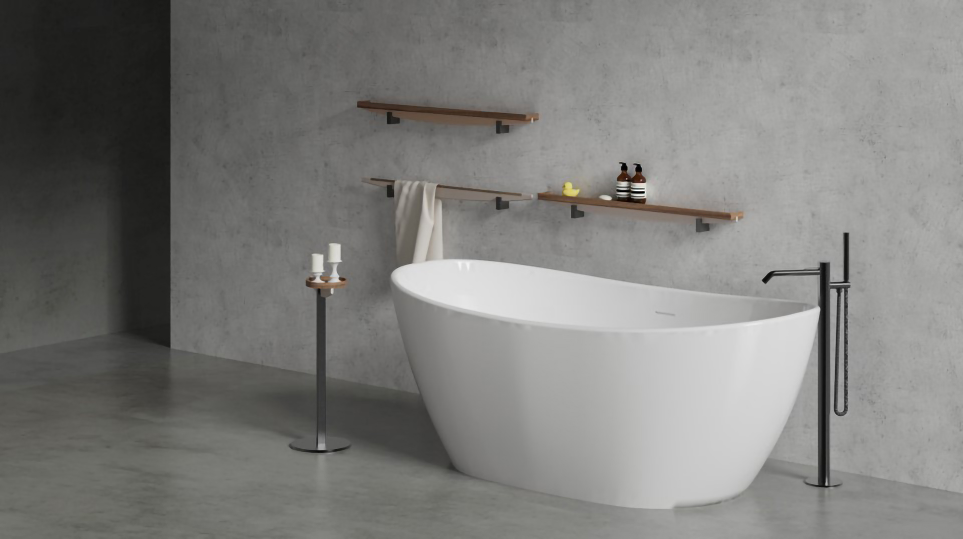 以優雅弧線為核心的浴室設計,旨在營造身心放鬆的氛圍,其流暢的燕尾造型如同眼線般自然舒展,讓人在浴室中卸下疲憊、平靜心靈。