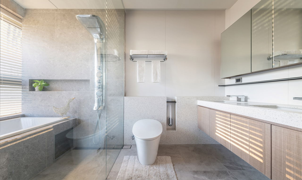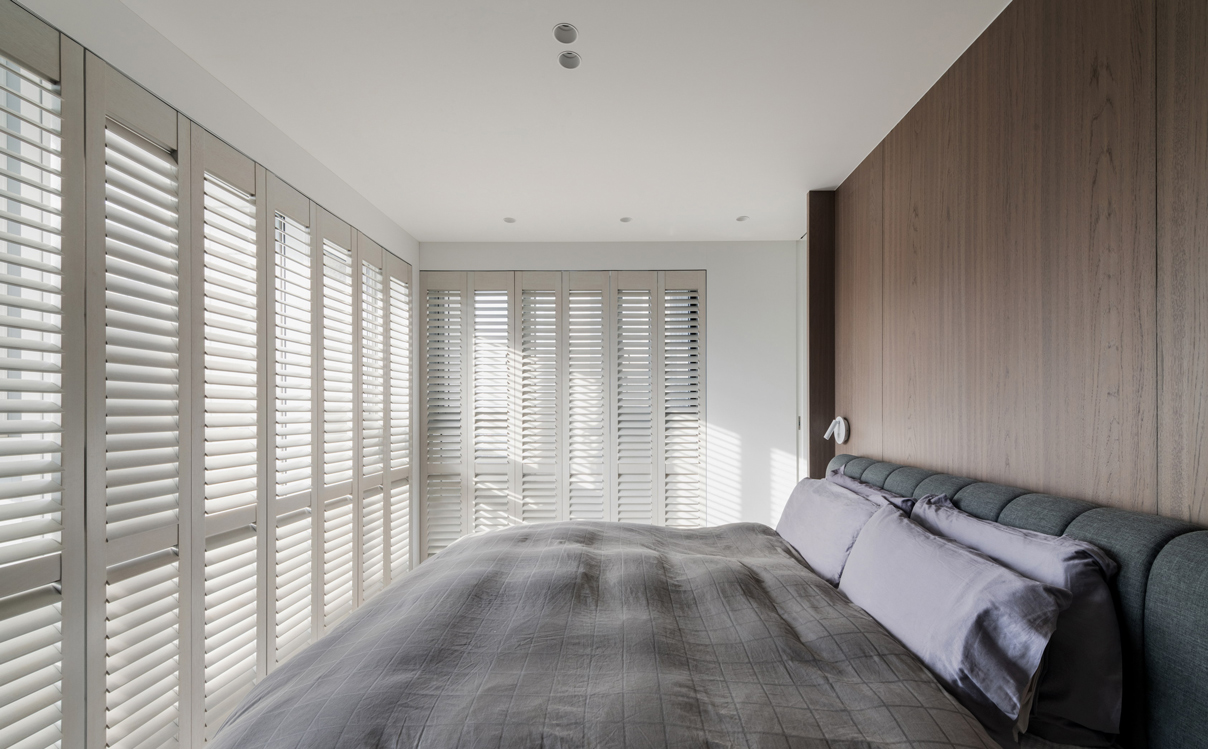 考量家庭成員組成單純,又有年幼的孩童共居,無論是當前或未來的空間使用形態都充滿了未知性,因此,全區空間規劃以開放式思維進行設計。多數的居家活動都在包含了客廳、餐廳及廚房的公共區域內發生,這些場域都可以是孩子們嬉戲、遊樂的活動空間,為了讓他們擁有最大的活動範圍,客廳在配置上特別拉大沙發與電視的距離,後方也設置獨立的遊戲間,打造出孩子可以自在遊憩的小小天地。公共空間內的電視櫃、中島吧檯等大型家具,則採取可移動式的規劃,以因應孩子長大後不同的使用需求。透過開放設計結合可動性配置,錯落低矮的分割與半高的通透電視壁櫃,在保有獨立的空間機能界線之餘,也形塑的廣闊、流動的閒適居家生活。