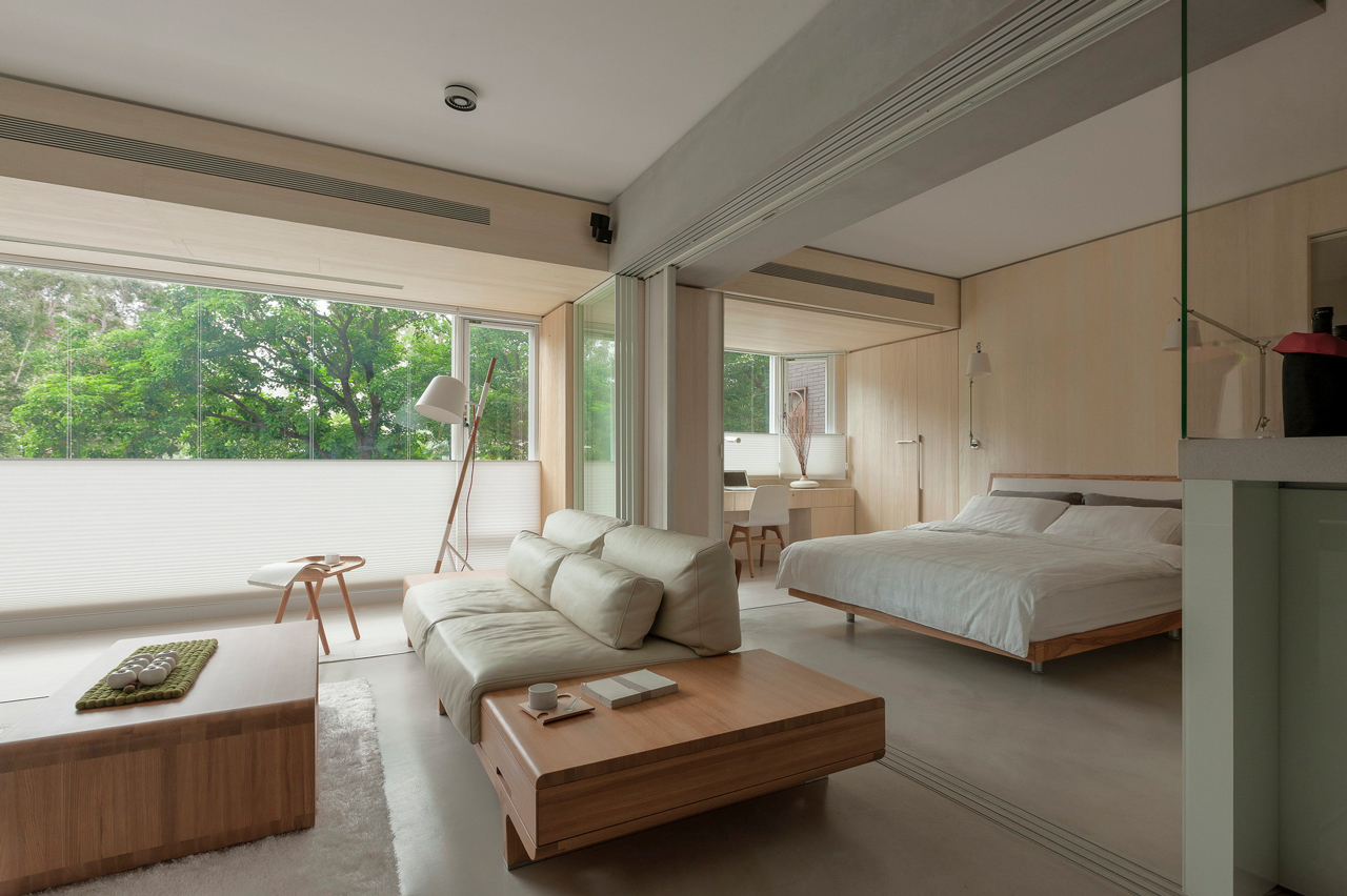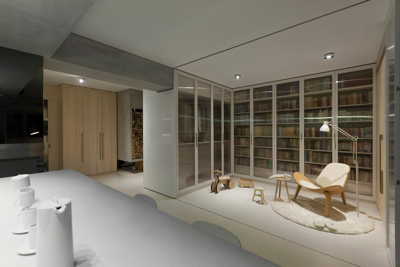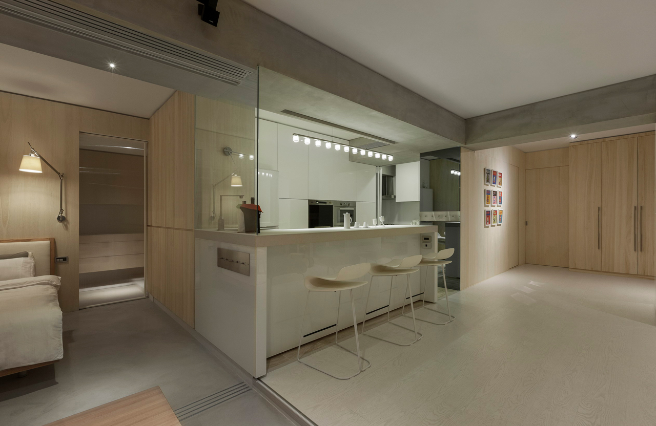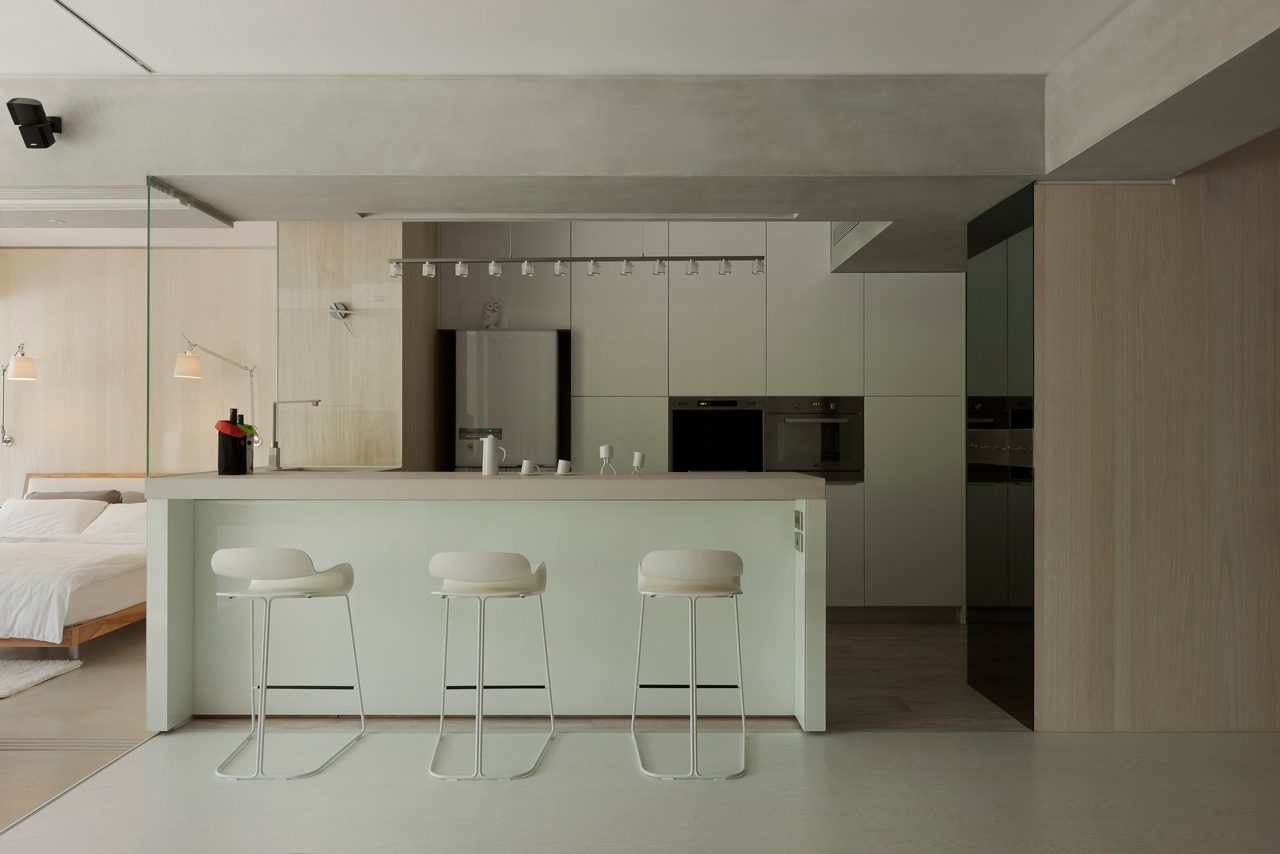在以「窗」組構家宅室內豐富的空間層次與表現之中,我們亦以開放式平面與可彈性使用的多層次介面進行設計思考,以模糊化的空間分界實踐一個去中心化的住居生活想像,有限的隔間牆搭配多層介面的交疊使用,創造了流動性及視覺、聽覺的穿透,藉由不同的活動與使用,讓每個空間都能成為生活的重心,同時透過簡潔的線條與素樸的材料,創造了純粹而低調的場域氛圍,如同一個留白的現場,等待著豐富的生活事件挹注,進而成就一個帶有詩意的,能建立空間與空間,空間與人對話的生活空間所在。