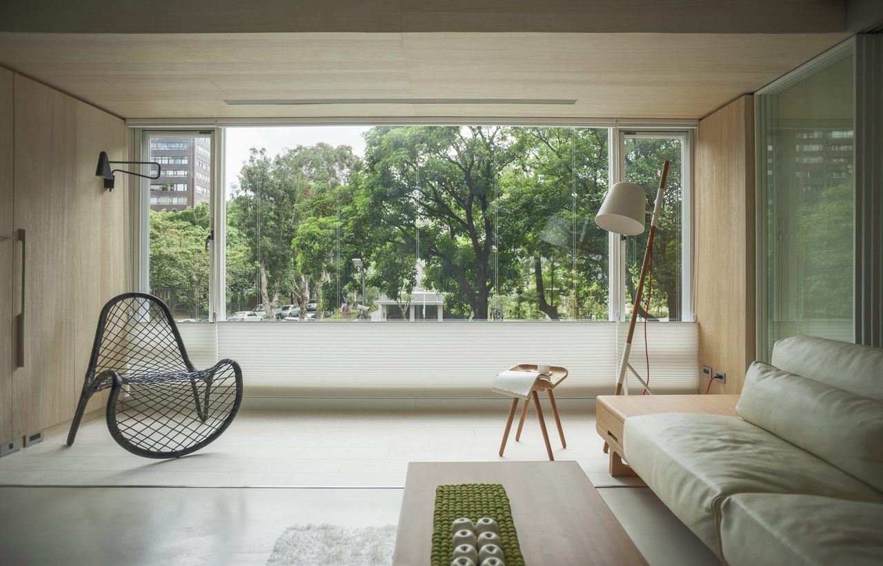 本案位於台北天母一處靜謐的住宅區域內,因緊鄰綠意盎然的公園,讓住宅得以擁有絕佳採光,在設計上,我們以「讓窗作為空間的主角」開始發想,大型落地窗作為連結空間內與外的中介介面,猶如鏡子般映照出內外心情。探討物件本質,窗不僅可作為室內採光之用,亦可如動態畫作般將外部環境的變異,春生夏長,秋收冬藏,從四季更迭到日升月落的時序變換都投射於室內,透由窗外的景致變化,給予空間不同的層次表情。