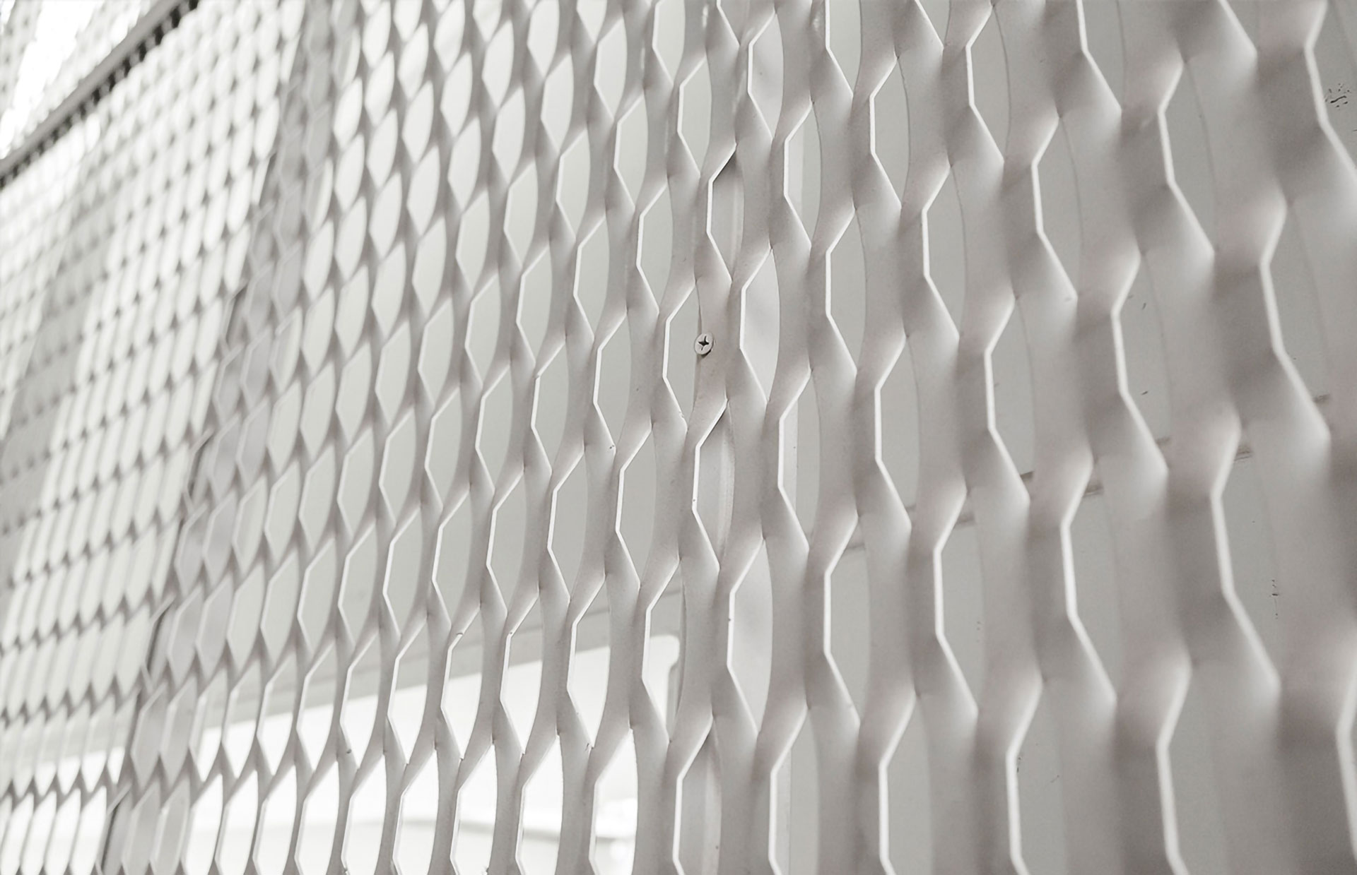 城市中越來越多金屬網格建材的應用,無論是佔據核心區位的大尺度建築立面,抑或街坊的中小型商鋪室內、家具,都可見金屬網蹤跡。從菱格紋形態的擴張網、呈絲面狀的編織網,到兼具結構與美學的沖孔造型,它們都以「軟硬兼備,剛柔並濟」的姿態,形構充滿科技感與未來性的當代都會地貌。