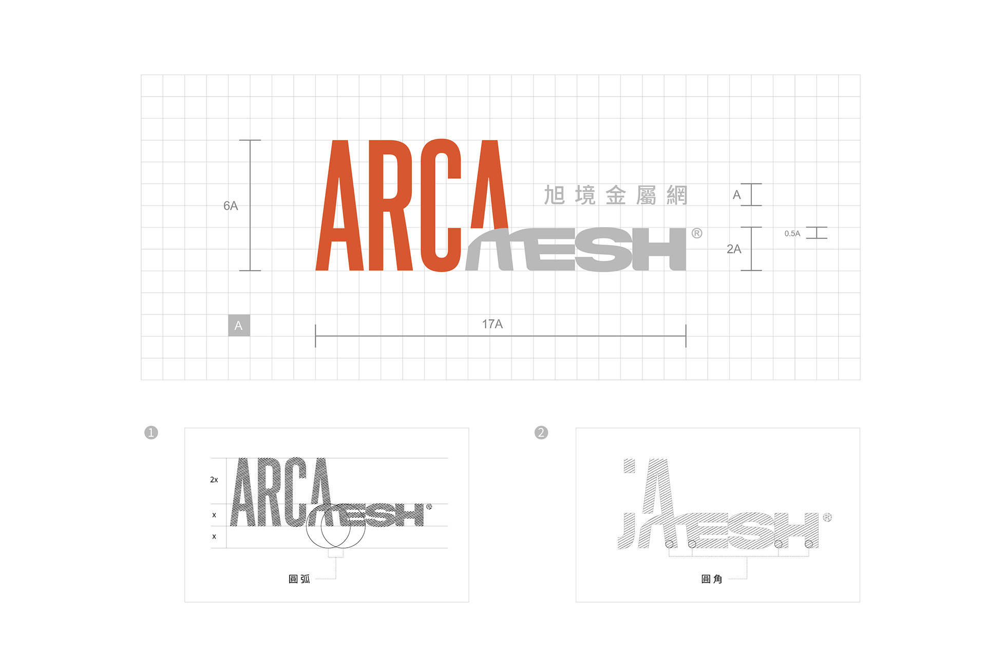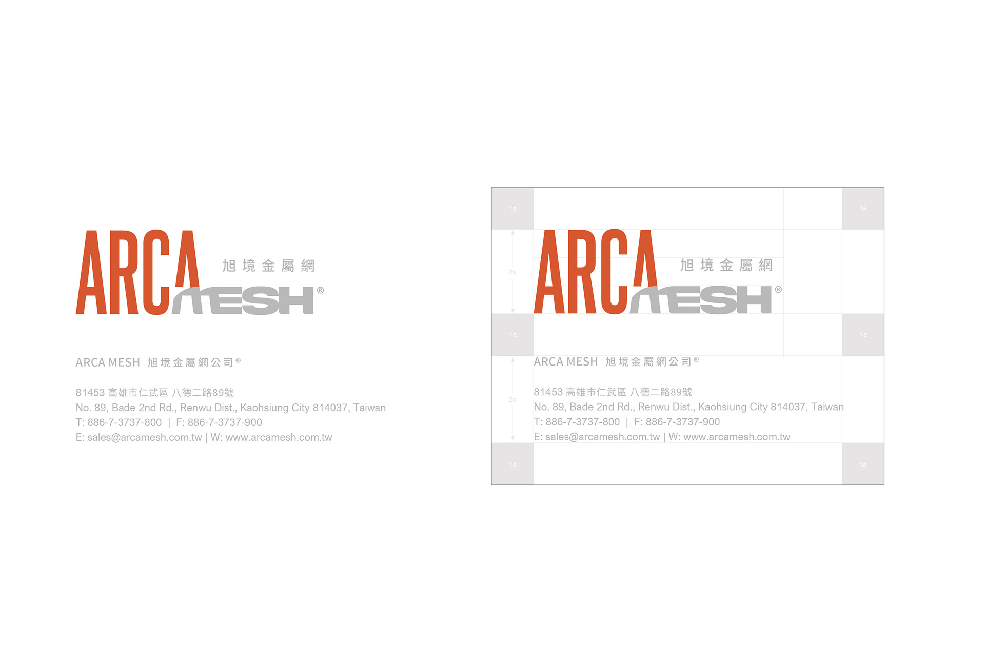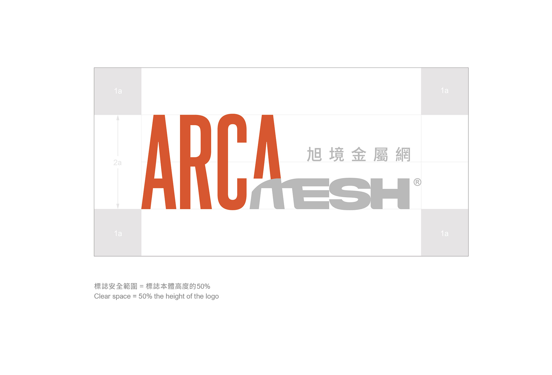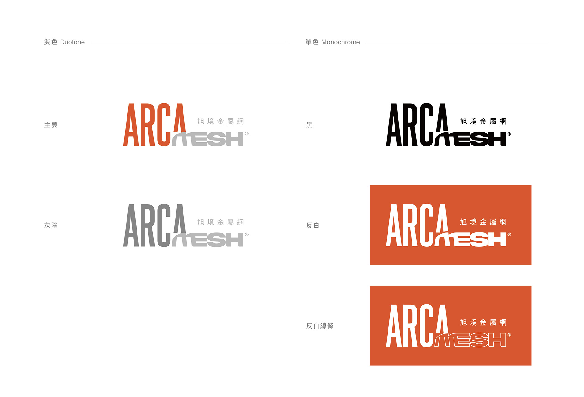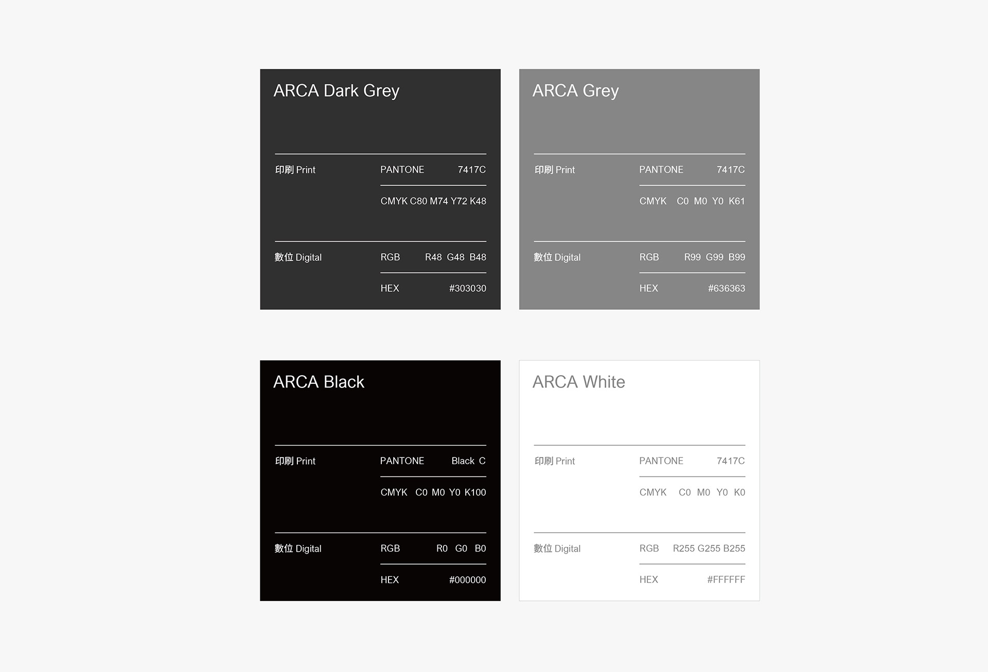 白底/灰階標誌,使用輔助色ARCA Grey。若有特殊情況(單色印刷或背景太過複雜),可依情況使用此變體。