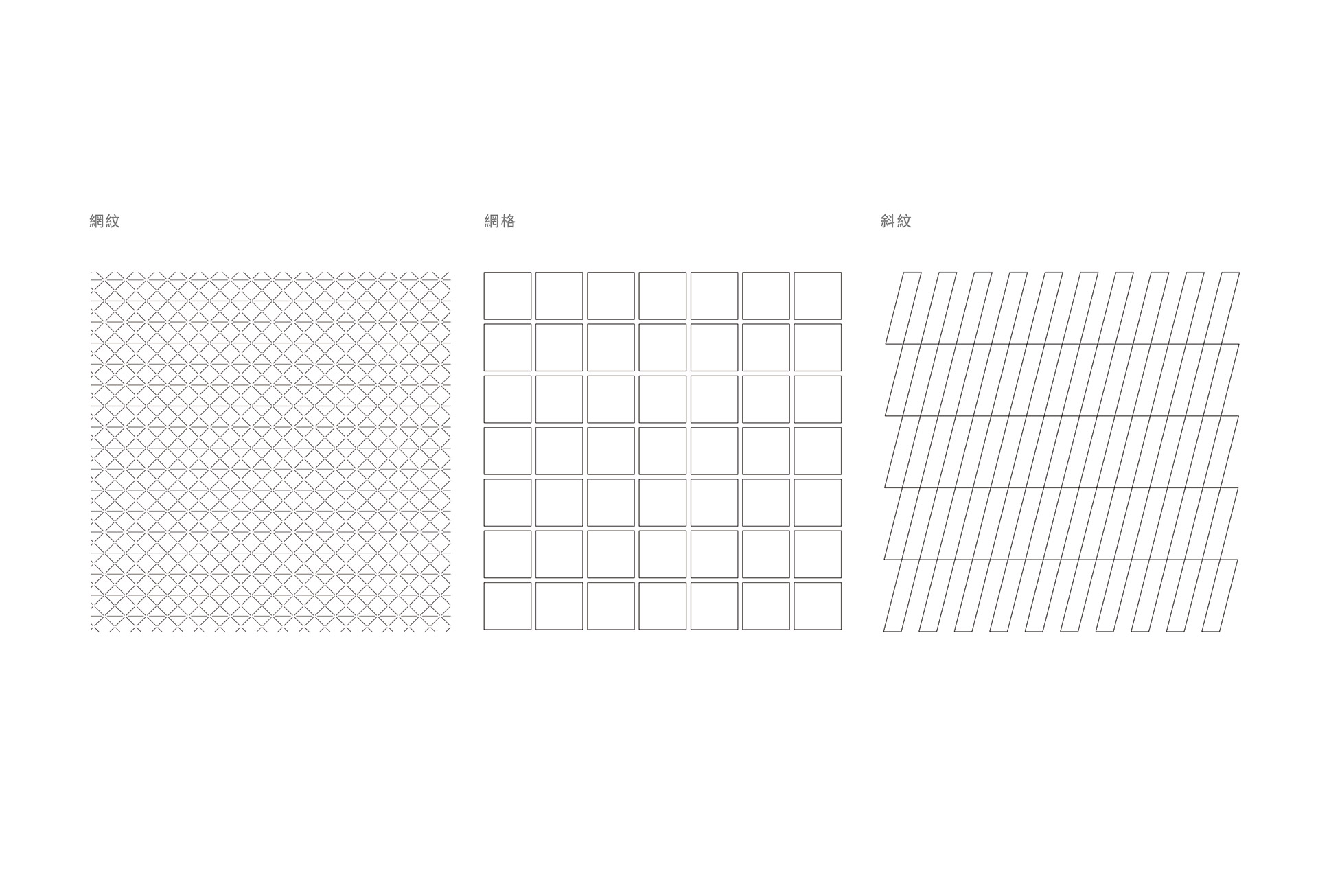 輔助圖形發想自在不同尺度下的金屬網的視覺效果,提供三種類的輔助圖形: