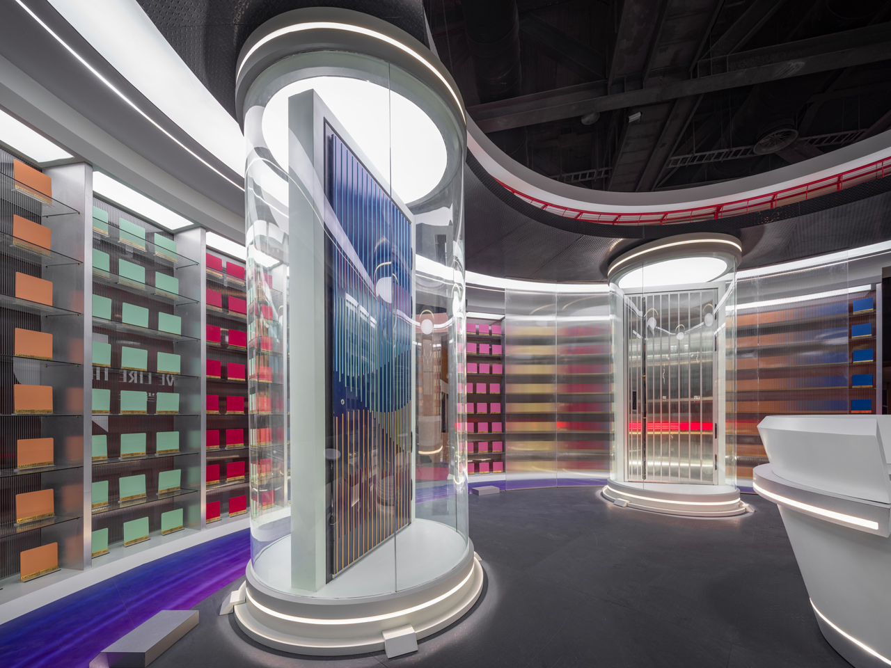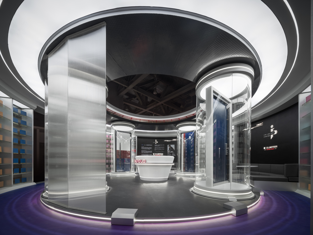 CHU-Studio carried out the space planning under three main characteristics: Circle, Setback, and Concept Store. The site is located at the intersection of two main circulations with three sides exposed to the aisles. The design team set up the circular floor plan with double entrances to create a welcome space to walk through readily and ease the flow during the exhibit. The circular floor plan also made setbacks from four corners of the square base to accommodate even more visitors. Meanwhile, the CMF design and lighting were all implemented under delicate considerations to ensure the idea of a “Trendy Concept Store”, which echoes its glamorous young appearance.