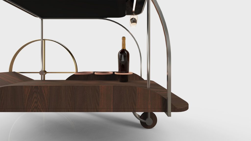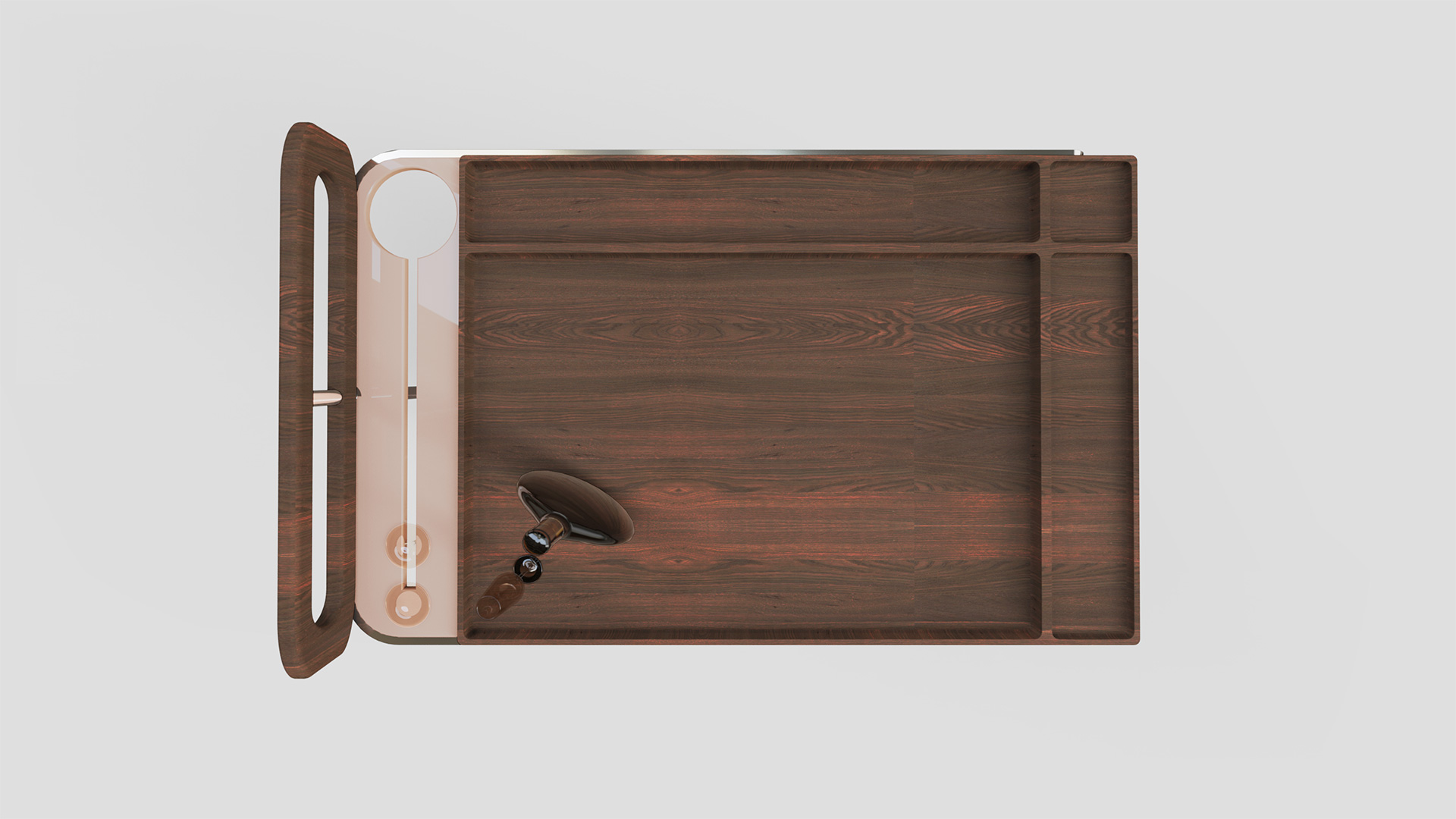 - 可收納推車:推車設計讓烘焙完後可接應糕點拿取,並能將熱食放置上方,冷食或酒類則可放置在下方收納區。