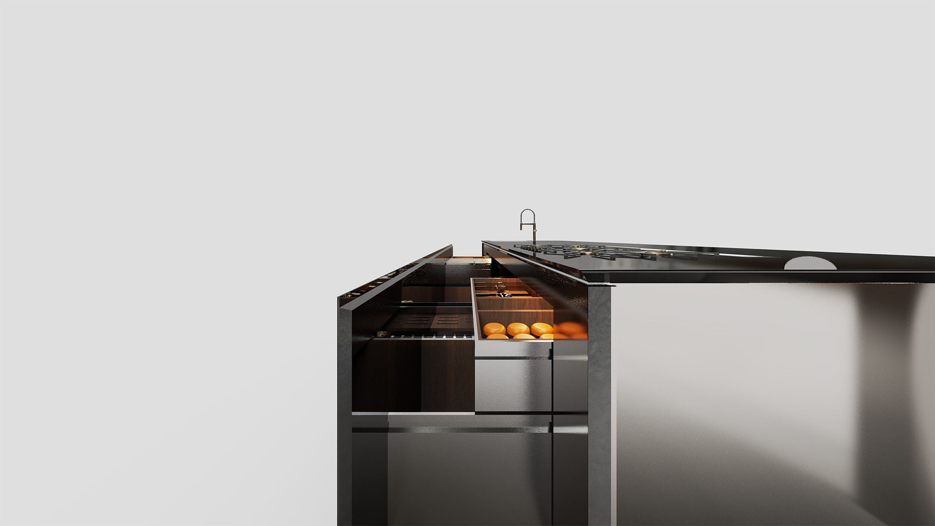 百侍系列設計初衷來自於對現代家庭生活氛圍的深刻洞察。過去,廚房是為了烹飪和三餐而生,功能性簡潔明了,隨著時間的推移,廚房已經蛻變成為家的心臟,不僅是料理的場所,更是情感連結、回憶交織的生活空間。在這裡,食物的香氣伴隨著笑聲在空氣中流動,日常的片段在光影變幻間逐漸豐富起來。