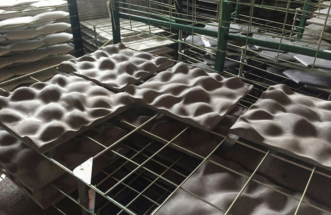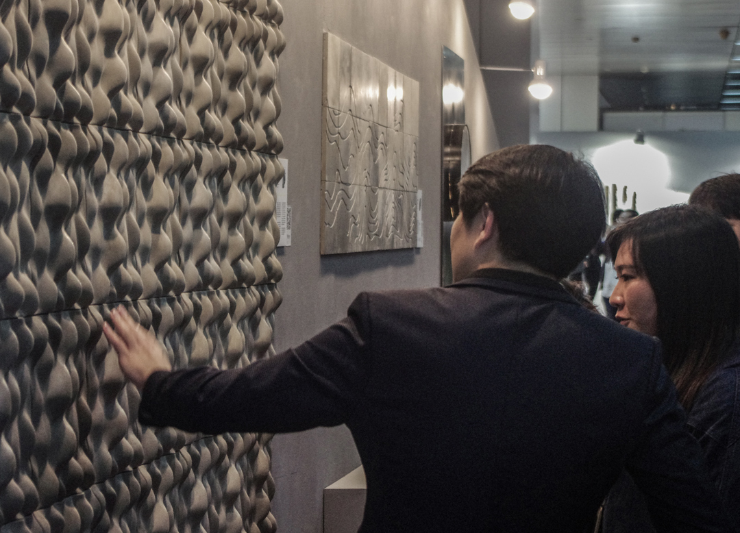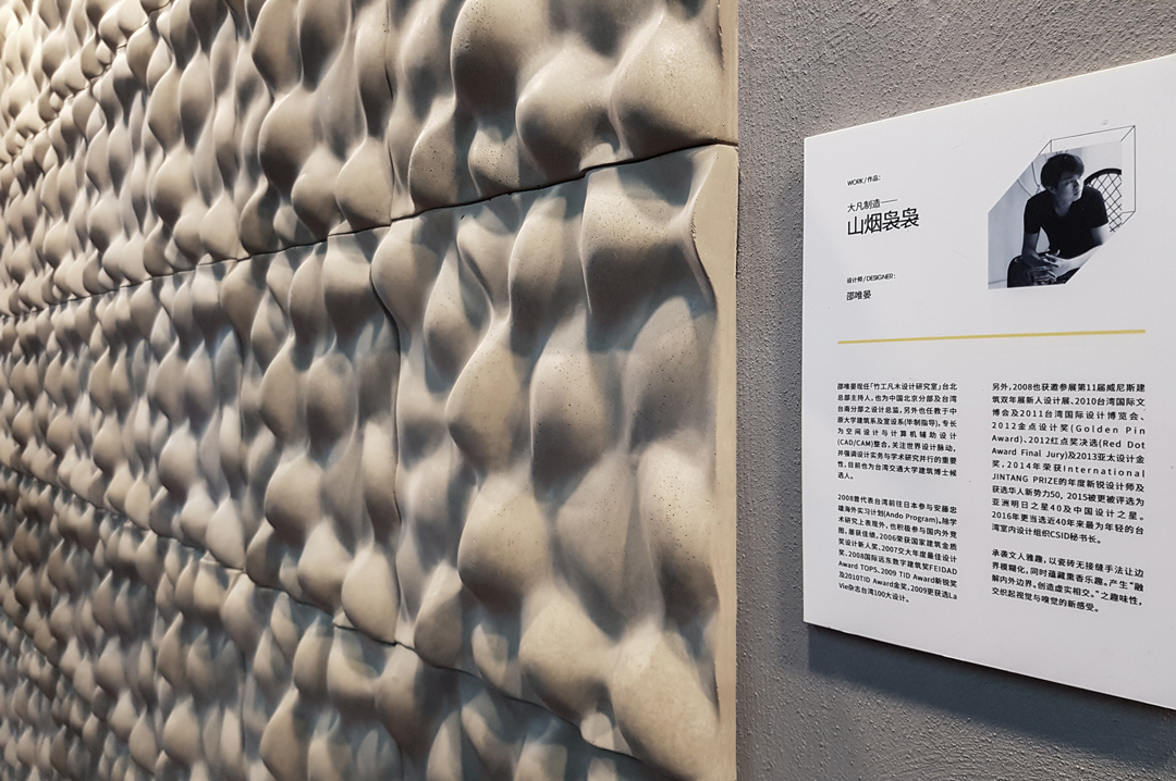 磁磚,過去為總以單一、均直的樣貌,透過工業生產的簡潔模矩化形式,呈現於二維度的建築立面。此次我們以參數演算的方式,以裊裊山煙的形象,結合可再製的水泥塑材,創造出兩種不同形式的30x30瓷磚類型。其一為四個面向皆可連結的無接縫磁磚,藉由不同的排列接合方向,創造出連續性中又帶有差異的獨特立面紋理。其二亦為四面皆可相連的無接縫磁磚,其特殊之處,在於背面以鏤空方式處理,當我們翻轉至背面,獨特的凹凸肌理便可提供不同的使用方式,做為煙灰缸,放置檀香與小型擺飾…等,藉由獨特的設計,讓空間為平淡的生活創造不同的樂趣。