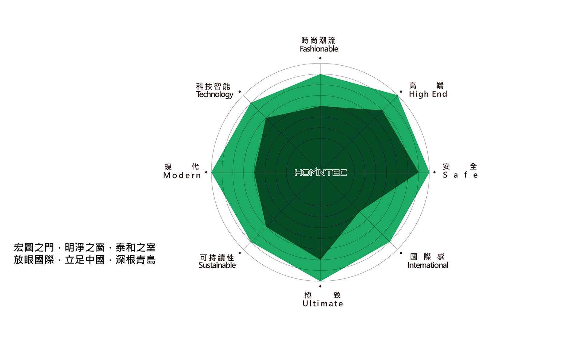 安全卓越、極致環保、節能保溫、完美靜音、超強防水、木文化、鋁包木、極窄極寬、現代簡約。