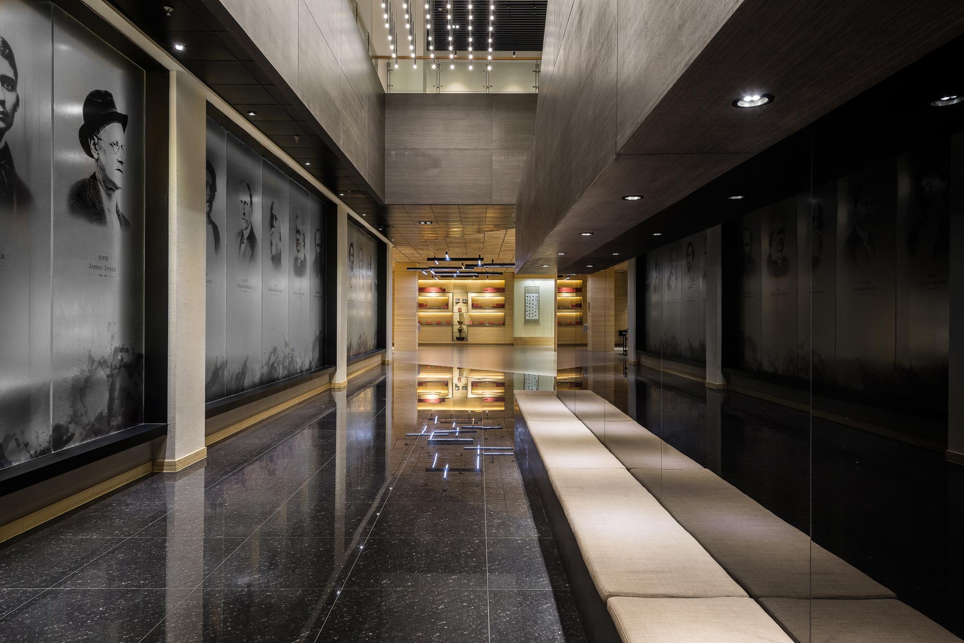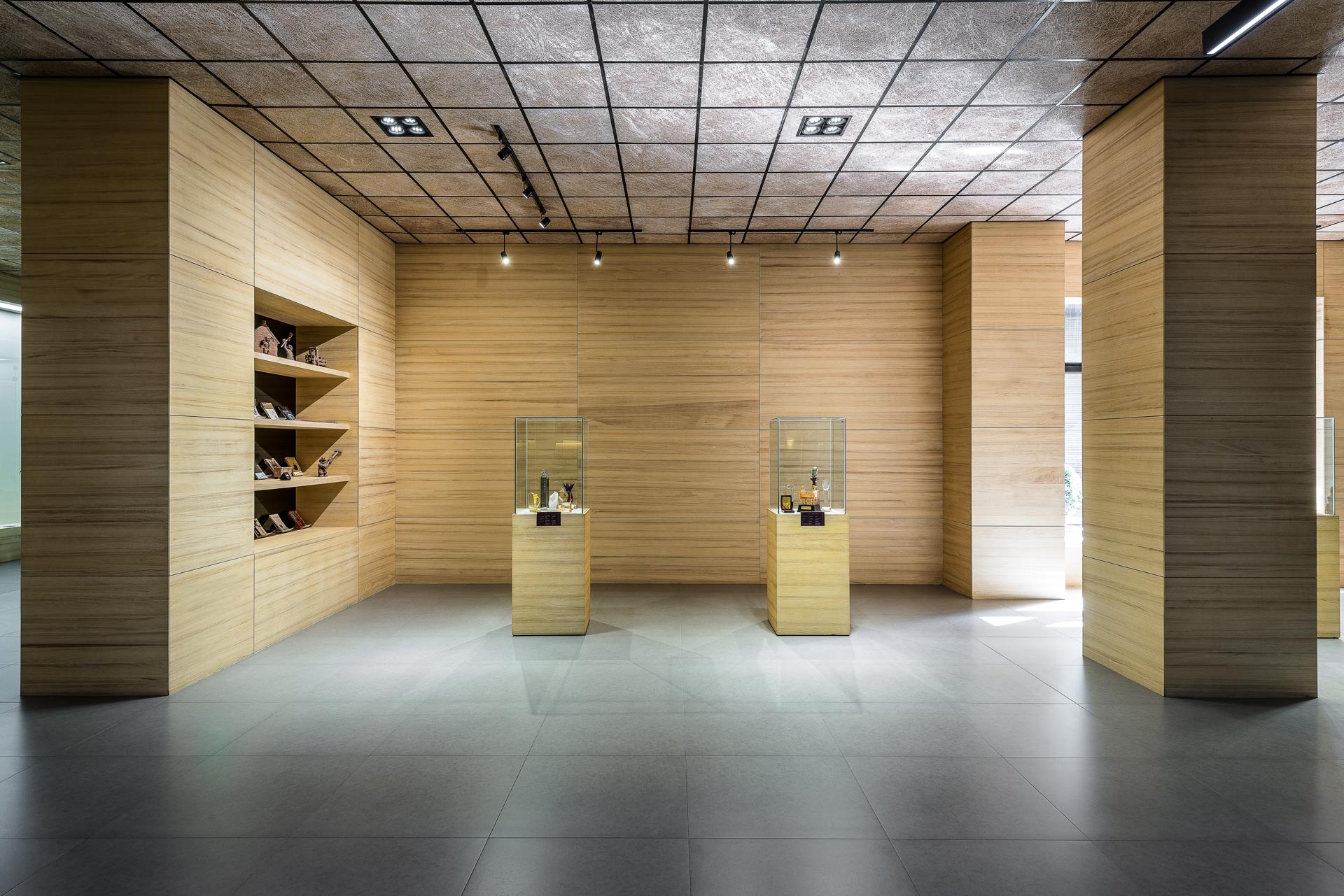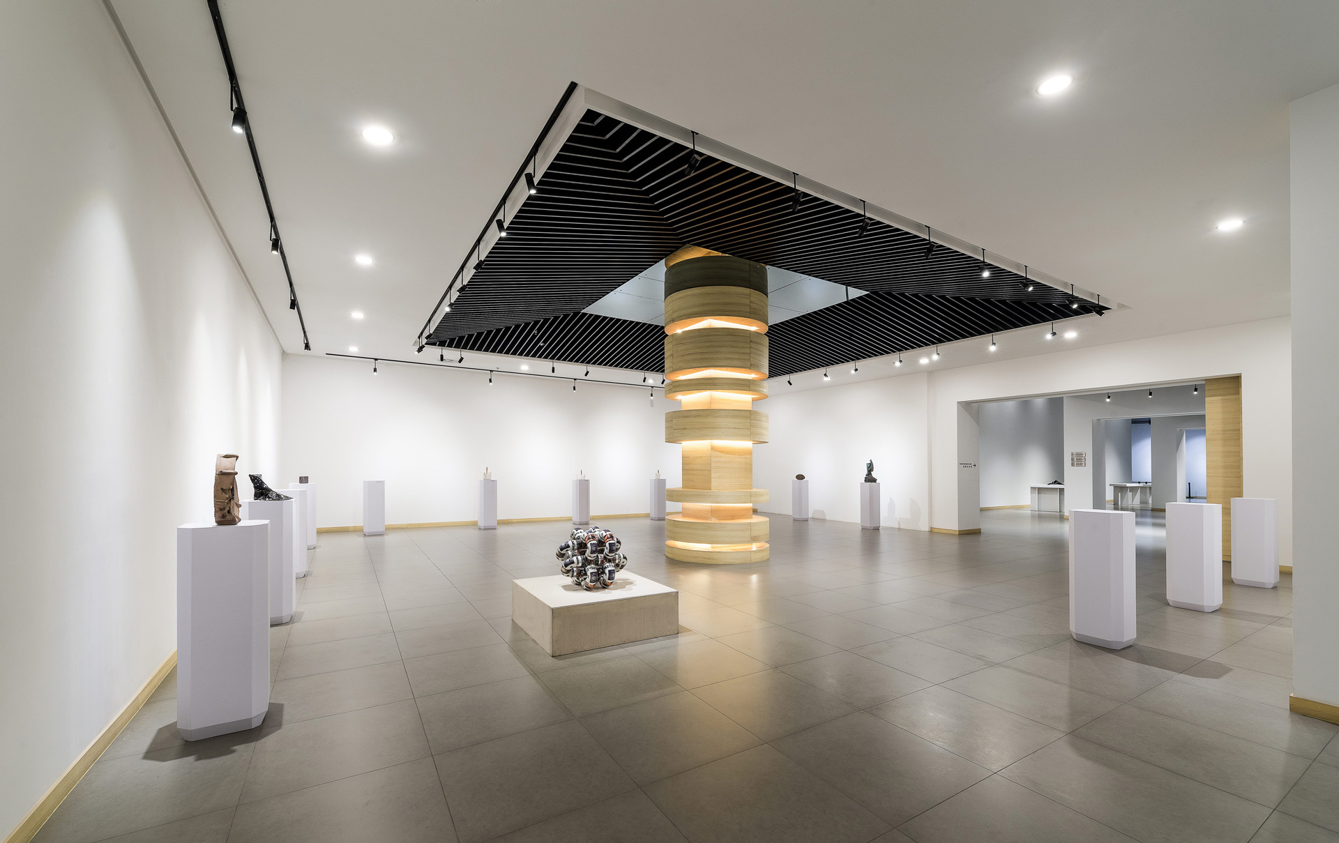 為承續賈老師的文學造詣,本館由然而生,主展廳的設計主軸為創造賈老師童年回憶中的四合書屋,圍繞在院內天井老樹下的讀書記憶,同時斜屋頂的形式則回應了賈平凹藝術館本身的建築語彙,透過當代抽象表現將原有的純結構的方柱, 設計為直通天頂的圓柱藏書閣,而圍繞其四週的為當代藝術大師的創作,象徵大樹毅力不搖,智識永流千古。