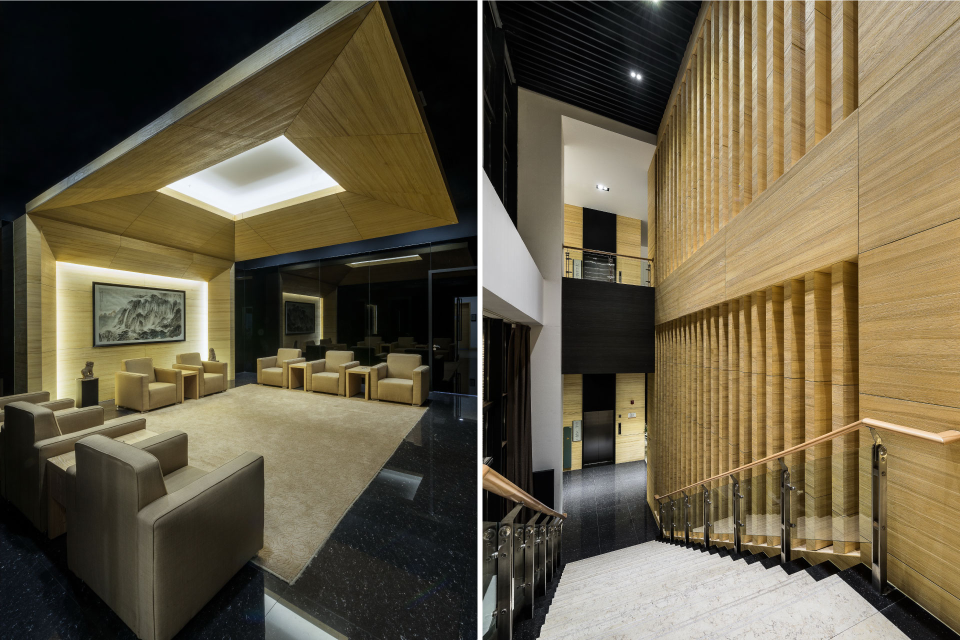 賈平凹老師眾多著名作品中以文書和字畫為主,並且對符號學有研究,故與賈平凹老師商議後,期望在整體空間策略上將「字」解構轉化為意象的空間元素,由其是漢字的「平凹」二字,更是意象轉換的核心主軸,從建築至室內、自軟裝包含家飾,都一以貫之。期望透過抽象圖騰的轉化植入,象徵賈平凹文學藝術有形與無形融入生活之藝術呈現。