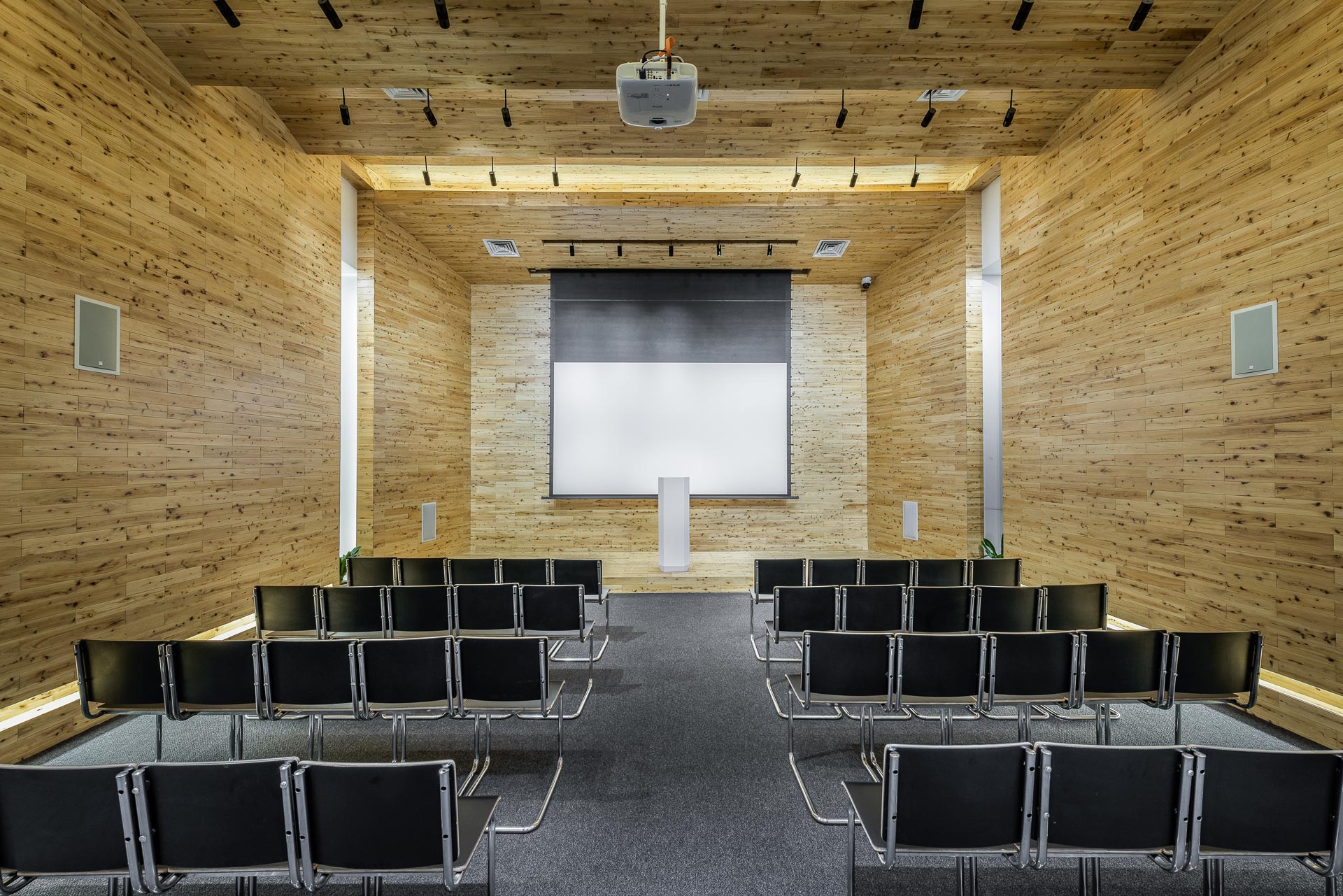 因此,建築主體的凹字型平面與單坡的屋頂形式採擷自於關中民居的傳統建築,同時也巧妙地與「凹」字形成呼應,而室內空間中的展示櫃、燈具、傢俱、傢飾、軟裝等,也都潛在地回應「凹」字的圖騰。期望透過此轉譯的手法闡述文學的神奇魅力,使參觀者充分感受到他文學作品中對於文化及符號轉型中傳統與現代的的深刻發問。