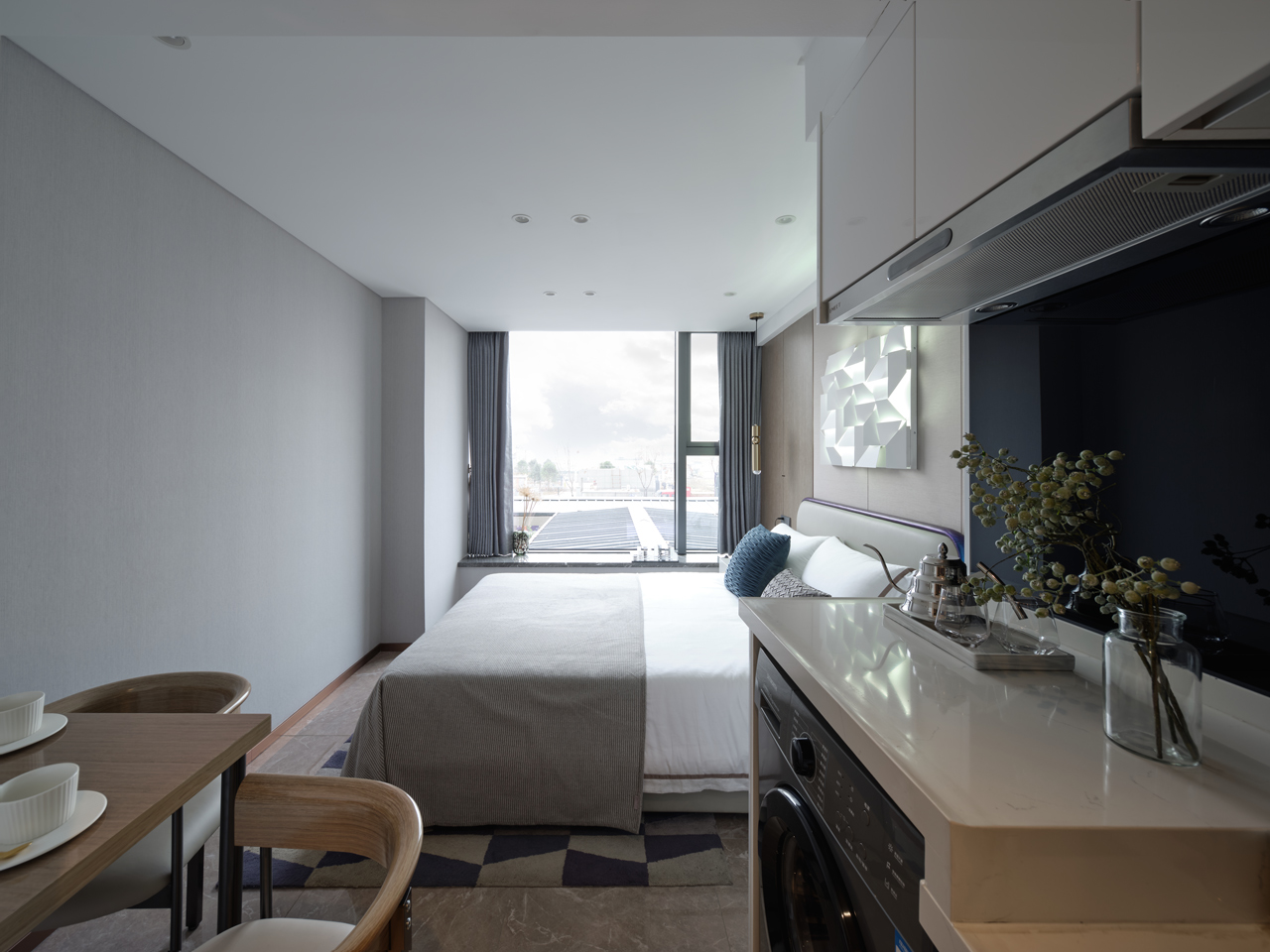 To maximize space usage, the design team adopted a high ceiling design in this real estate’s preliminary planning. The high-ceiling flat sells for only the same price as a general one while enabling the homeowner to divide it into double levels, forming a compact residence with high freedom and satisfying multiple functionalities. Such a spatial type that developed under the demand for urban living offered brand new residential solutions for those younger who lack financial capacity. They can work and live in the same space in condos, ensuring high practicality and freedom within urban life.