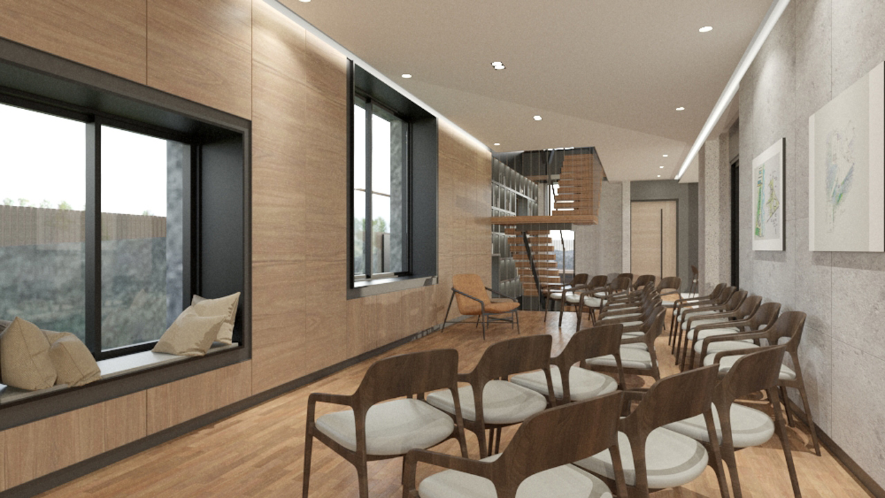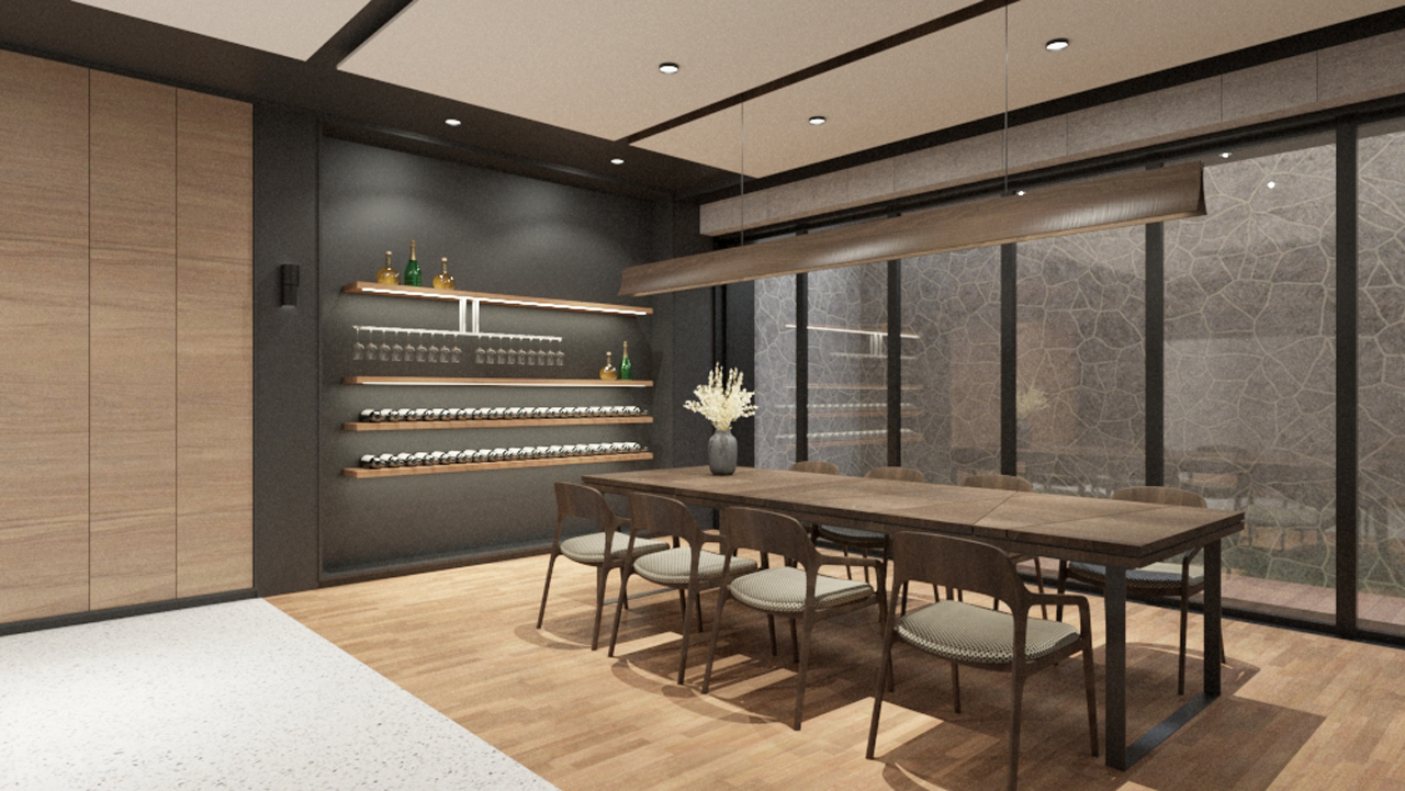 所謂會所,即是指同時包含了私人休憩與住居活動,以及和親友共享閒適時光的私人生活空間,一個能為人們提供健康娛樂、溝通交流,進而提升精神文化層次的場所。鑒於當前業主的工作、生活多在外地,因而將會所空間定位為個人在假日休閒度假之用,閒暇之餘在此接觸大自然,並能與朋友交際活動的場域。包含地下室與地面層一、二樓的獨棟建築內,擁有可供對外使用的客廳接待區、發佈廳、開放式餐廚區等公共空間,同時順應當地獨有的地熱資源,亦特別規劃了溫泉風呂區域,透過多元複合的場域設定,無論是論壇分享、藝術展演、私廚美饌,各類風雅的文藝與休閒養生活動都能在此發生,形塑一個人與人互動、提升五官感知的會客之所,同時滿足對內度假遊憩與對外交誼活動的雙向機能性。