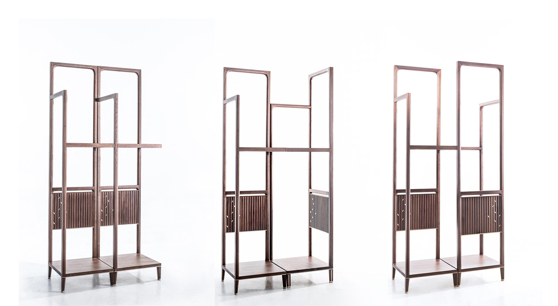 Apart from the formal design, the combination of various objects, has been a key feature in the “Poetic Glamor” Furniture Series, in that how furniture is no longer confined by its given functionality while responding to the diverse needs of the new eras, but through various number of pieces, mix-and-match of items, before creating new usage models, which was the focus of the design process. A series of flexible configurations of the clothing rack spells different facilitation configurations of different clothing and accessories usage, and it may also be converted to a freestanding partitioning screen with decorative effects. The single-piece chair may become double-seat sofa in twin-set combination mode, according to user needs. The combination of tea tables of various heights can be combined to accommodate various usage needs, all of which is not just an emphasis on the existing functionality of furniture but to suit the diverse nature of contemporary life.