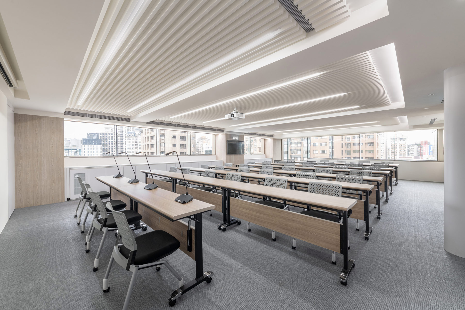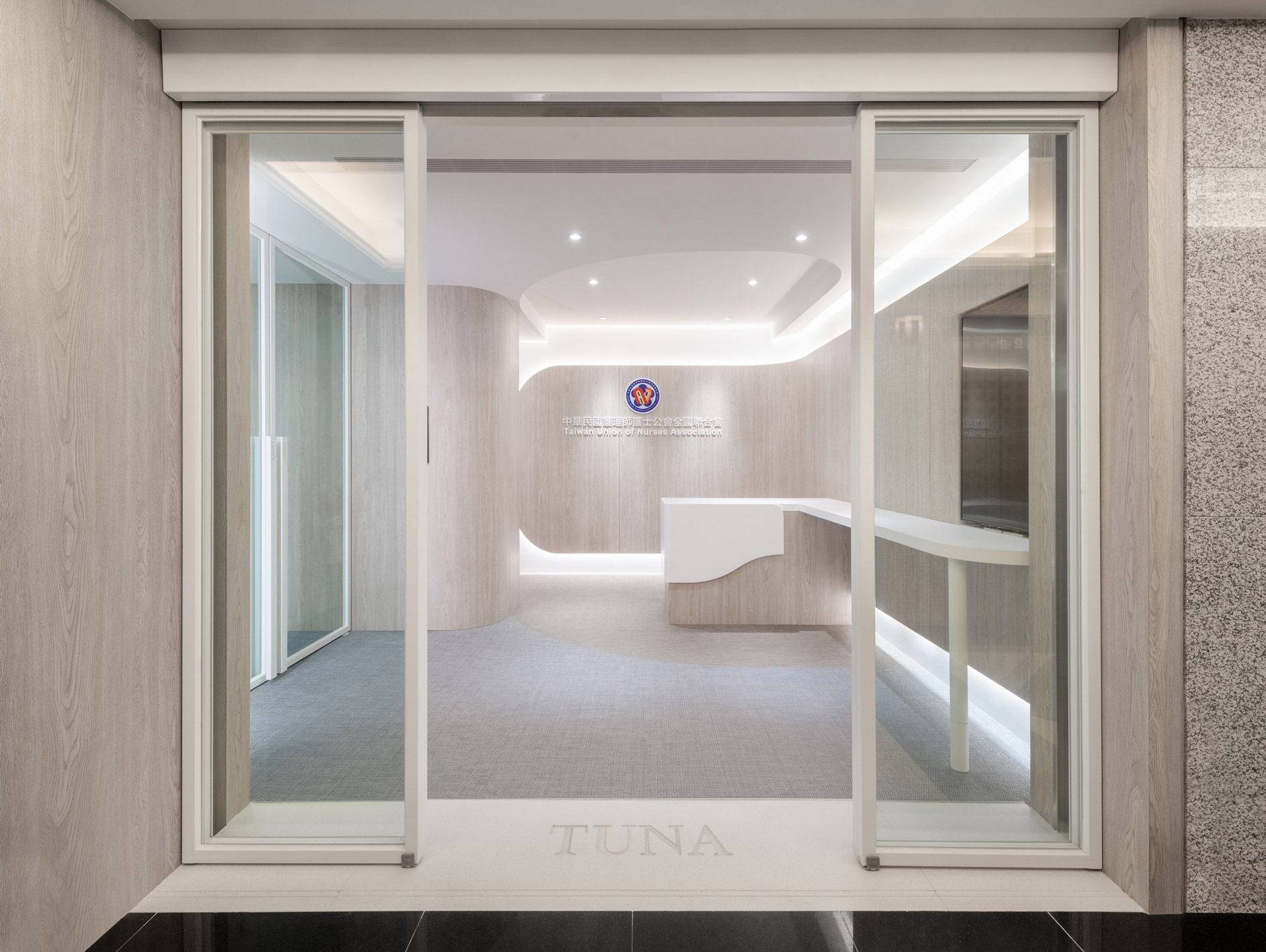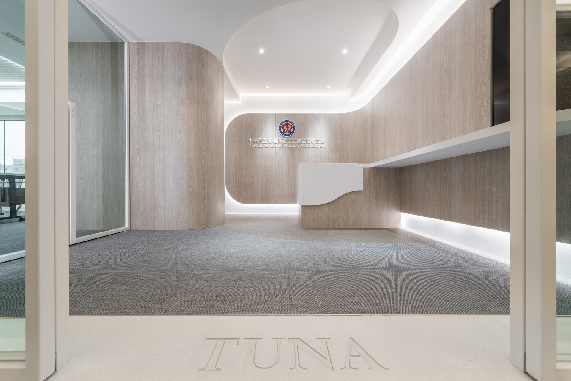 設計基地位處台北市中心,延續組織人性關懷的精神與護理師著裝給予人的潔白印象,團隊在立面以亮色磁磚與大量白色營造柔和主調,同時堆疊淺色系木紋、地毯等異材質,增添多樣層次感和視覺深度。平面整體採開放式布局,透過玻璃門與減少隔間牆等手法收整零碎空間,之後亦能根據使用需求,區隔多人會議模式或小組討論模式,配合水平延伸的天花格柵,銜接至縱向開窗的開闊視野,順暢的動線安排引導視線流暢地穿越,在有限空間裡共築敞亮、美好的想像。