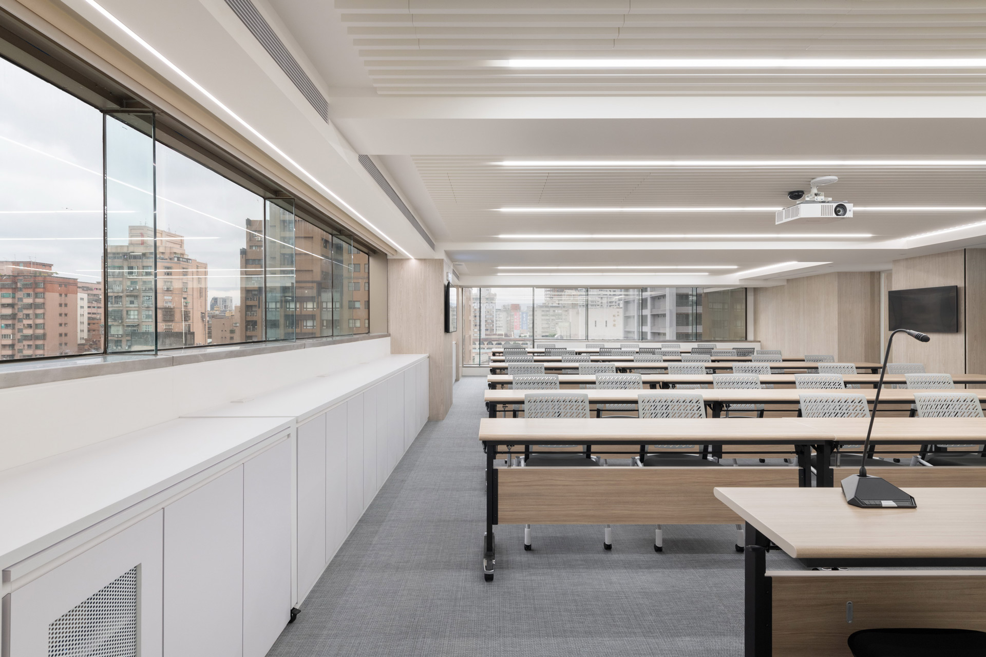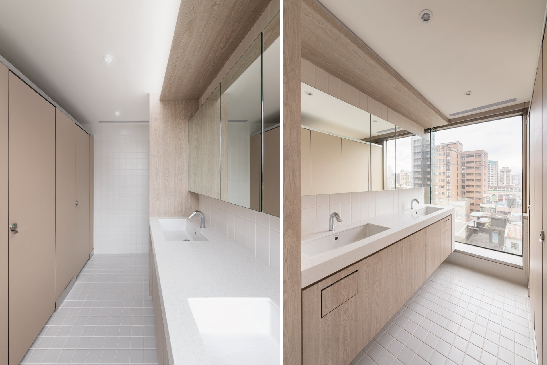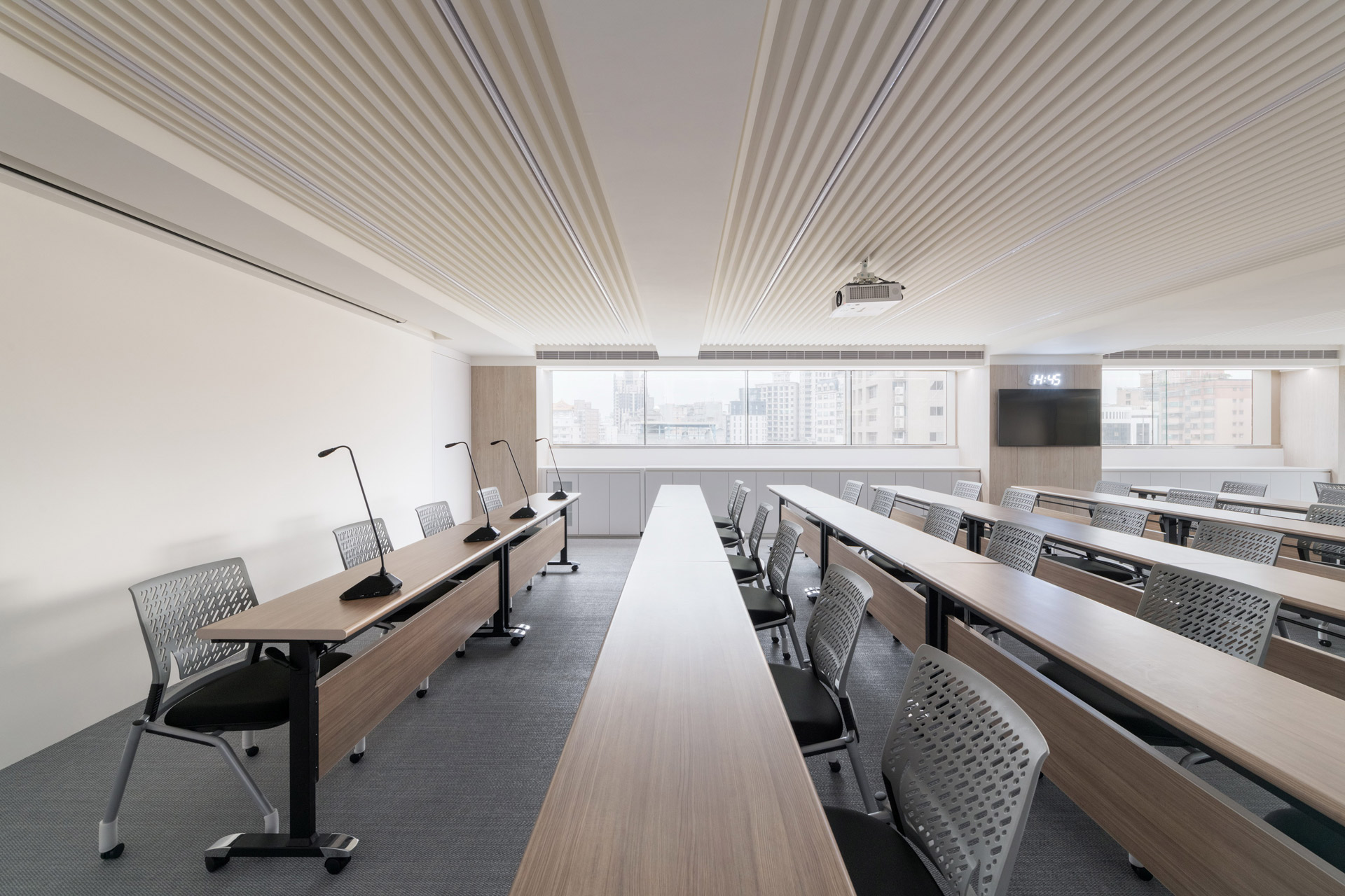 設計基地位處台北市中心,延續組織人性關懷的精神與護理師著裝給予人的潔白印象,團隊在立面以亮色磁磚與大量白色營造柔和主調,同時堆疊淺色系木紋、地毯等異材質,增添多樣層次感和視覺深度。平面整體採開放式布局,透過玻璃門與減少隔間牆等手法收整零碎空間,之後亦能根據使用需求,區隔多人會議模式或小組討論模式,配合水平延伸的天花格柵,銜接至縱向開窗的開闊視野,順暢的動線安排引導視線流暢地穿越,在有限空間裡共築敞亮、美好的想像。