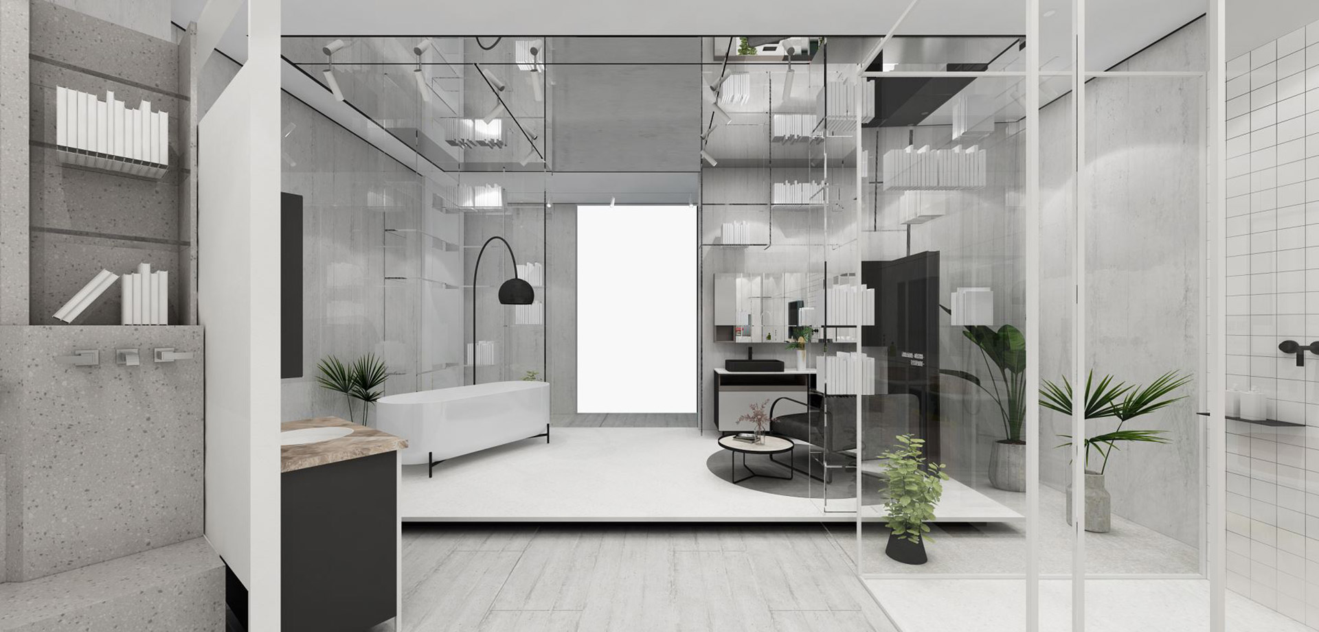 而材料圖書館展間則呈現色卡小樣、產品完工案例、產品規畫虛擬體驗以及工法展示,在樣板間和部分展示空間,亦可配合商品調性,以去風格化手段凸顯並體現產品。