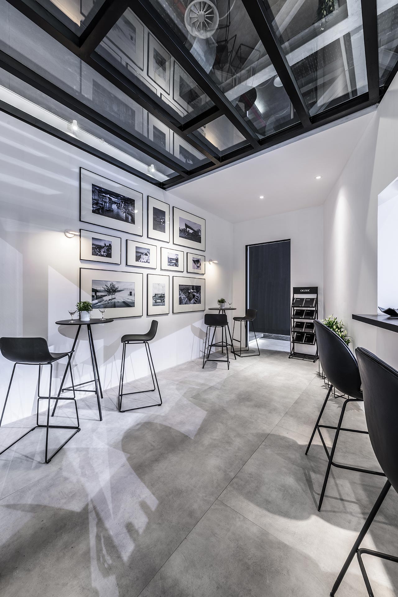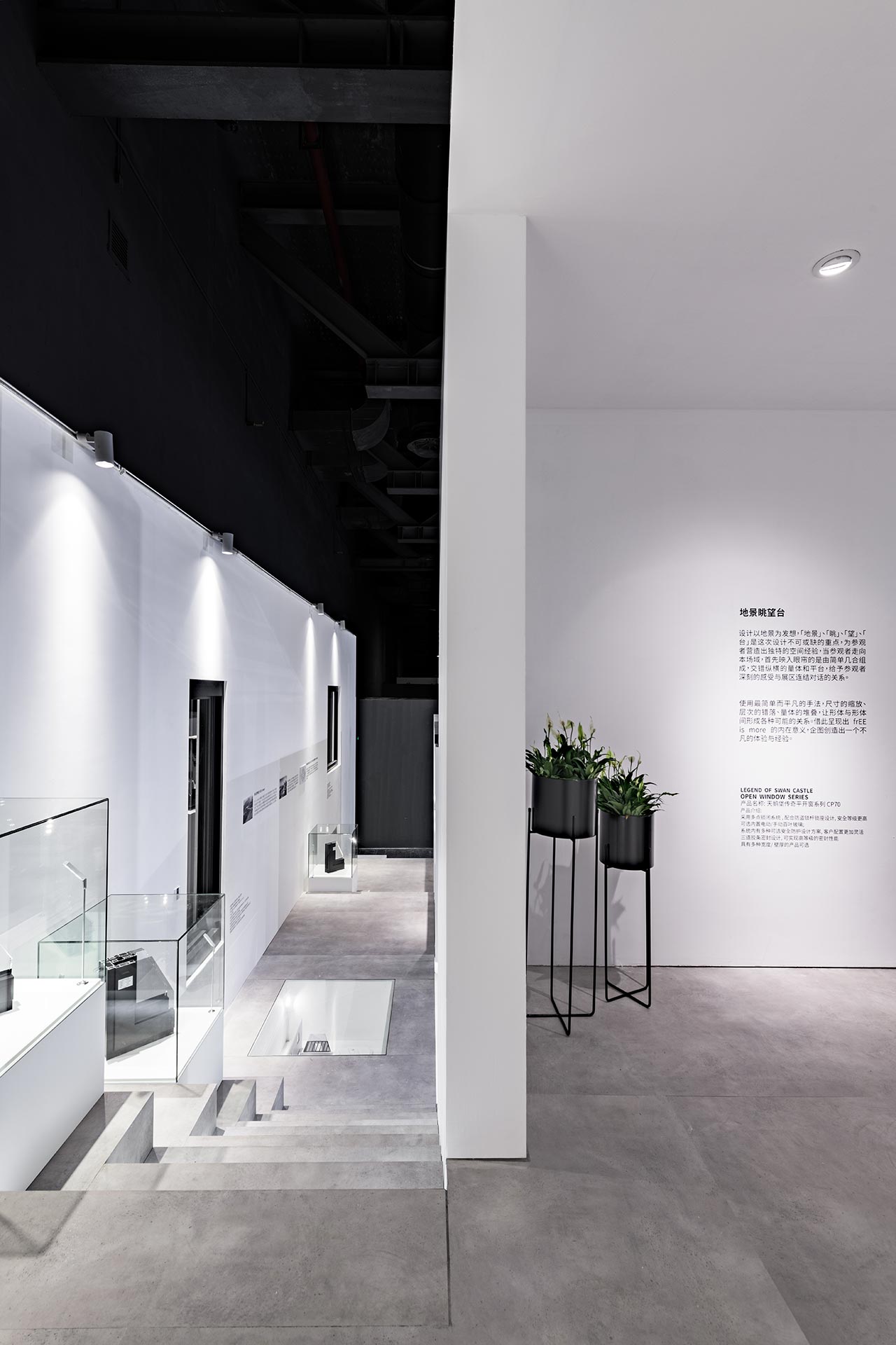 The rectangular plan of the exhibition area adopts an open-plan design, through a large number of staircases and platforms to create urban landscapes of height variations, on the one hand, it addresses to the fact that 2018 OEZER doors and windows were invited to participate in the inaugural Venice Biennale, with particular reference in the local humanistic landscape, of which the spatial structure were translated and transpired in the layout of the exhibition space. Furthermore, through these ups and downs, along the museum-like circulation paths with enriched spatial perception, and through allowing people to flow naturally through open domain, it blurred the clear boundary between the public domain and the circulation path. In addition to the existing product display, the exhibition area also includes a space model and a demonstration of future experimental space, including a coffee shop and a glass sun room imbued in the circulation path, allowing visitors to have more experience when they roam, which also echoes with the original spirit of Free Space.