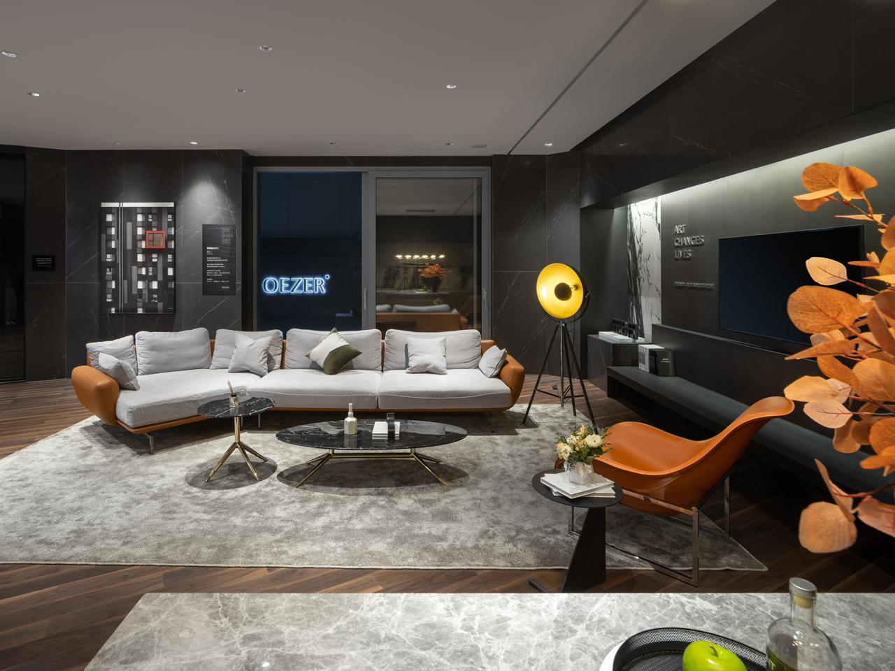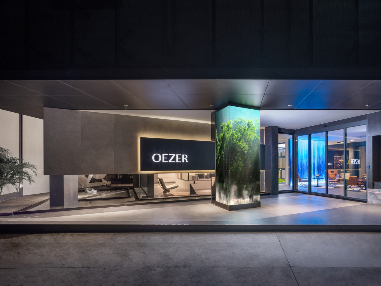 The design planning of OEZER headquarters applied strategies of their 5th generation retail stores, emphasizing the advanced thinking of internalization and design. The five main characteristics including tilted layout, ambiguous boundary, multimedia interaction box, retractable social area, and designer product showroom.