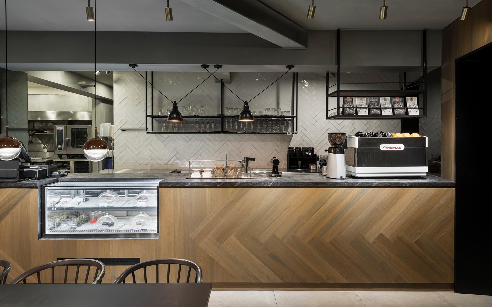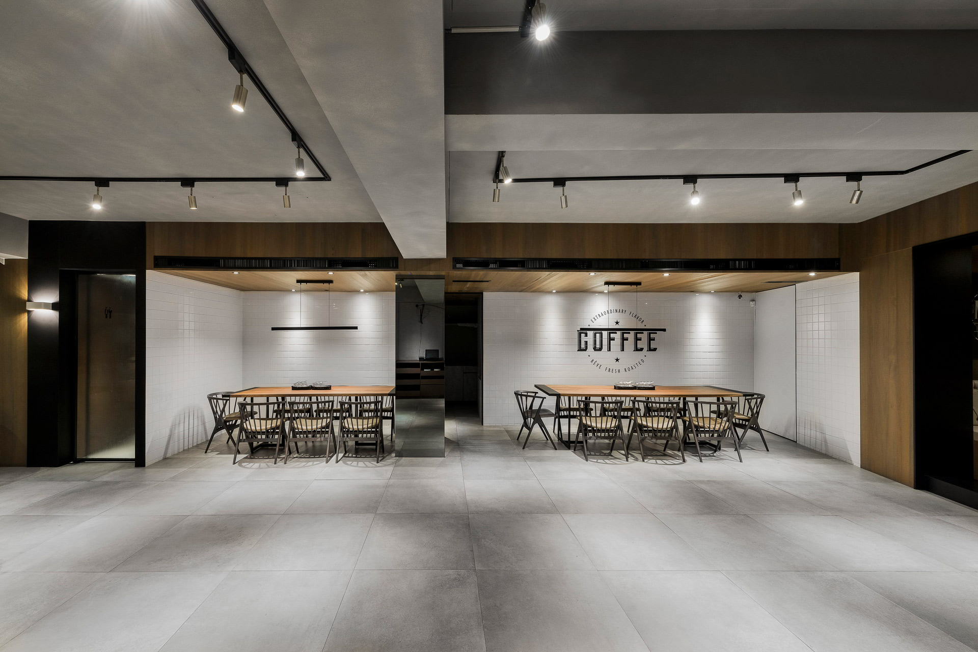 這是一家連鎖品牌體系的咖啡館,結合了義式咖啡、精品咖啡豆及冰滴咖啡、手沖咖啡體驗、精緻輕食餐點…等,販售廣義咖啡衍生商品的複合式餐飲空間。二層樓高的商業建築位處緩坡上,藉由量體退縮、地坪抬升,空出一塊小型綠帶,並以漸次內凹的踏階,創造一個多層次的內外空間過渡。建築立面以金屬格柵結合大面落地窗櫺,透過內外對話與當代建築語彙,共構都市生活裡的慢活角落。