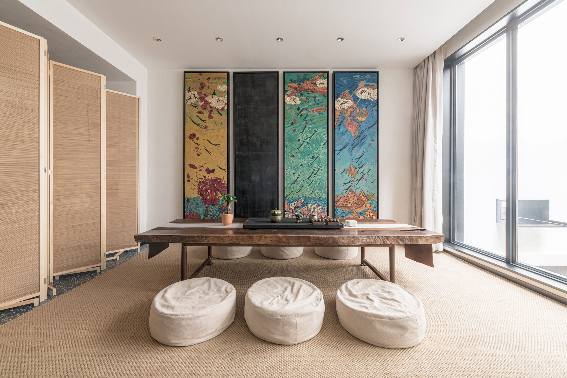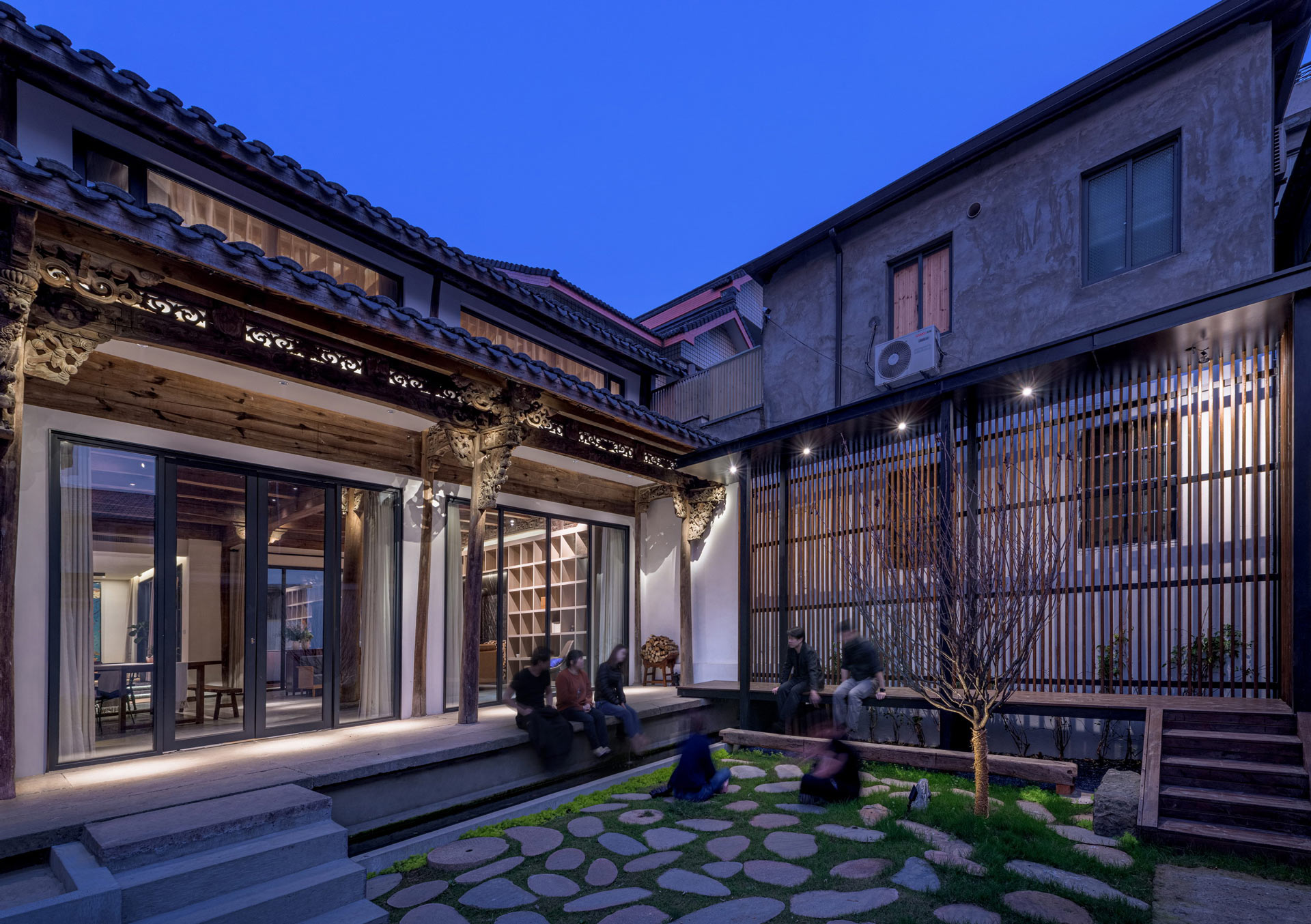 藝術聚落「畫外桐塢」位於杭州市郊,鄰近西湖畔,是座迄今1300年歷史的鄉間集村。群山與原始林相環繞,雲煙裊裊的環境,古意中隱含著寧靜的風情。設計基地為具有近200年歷史的傳統南方木構式合院,3名年輕人在偶然機緣下發現這幢老屋,傾頹的建築原已準備拆除重建成新式當代樓房,尚存的中式木質柱樑以榫卯搭接,雅緻非凡的雕刻細節,處處展現時光流淌下的鑑古悠情。本著對傳統建築文化的熱愛與情懷,一股與生俱來的使命感讓我們決定攜手合作,拿出個人積蓄,以15年的時間承接下這棟建物,並結合三人各自的專業-品牌運營、設計、工程,藉由不同領域的聯合、碰撞,耗費大量精力將頹圮建築保留維護、改造為老屋社區文化交流基地,網紅、背包客、社區居民齊聚,讓建築透過跨領域對話重獲新生。