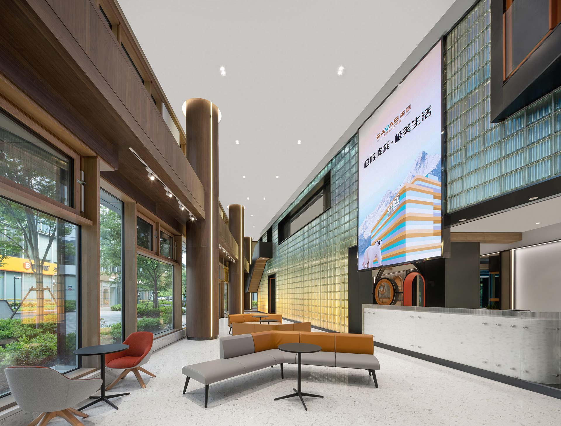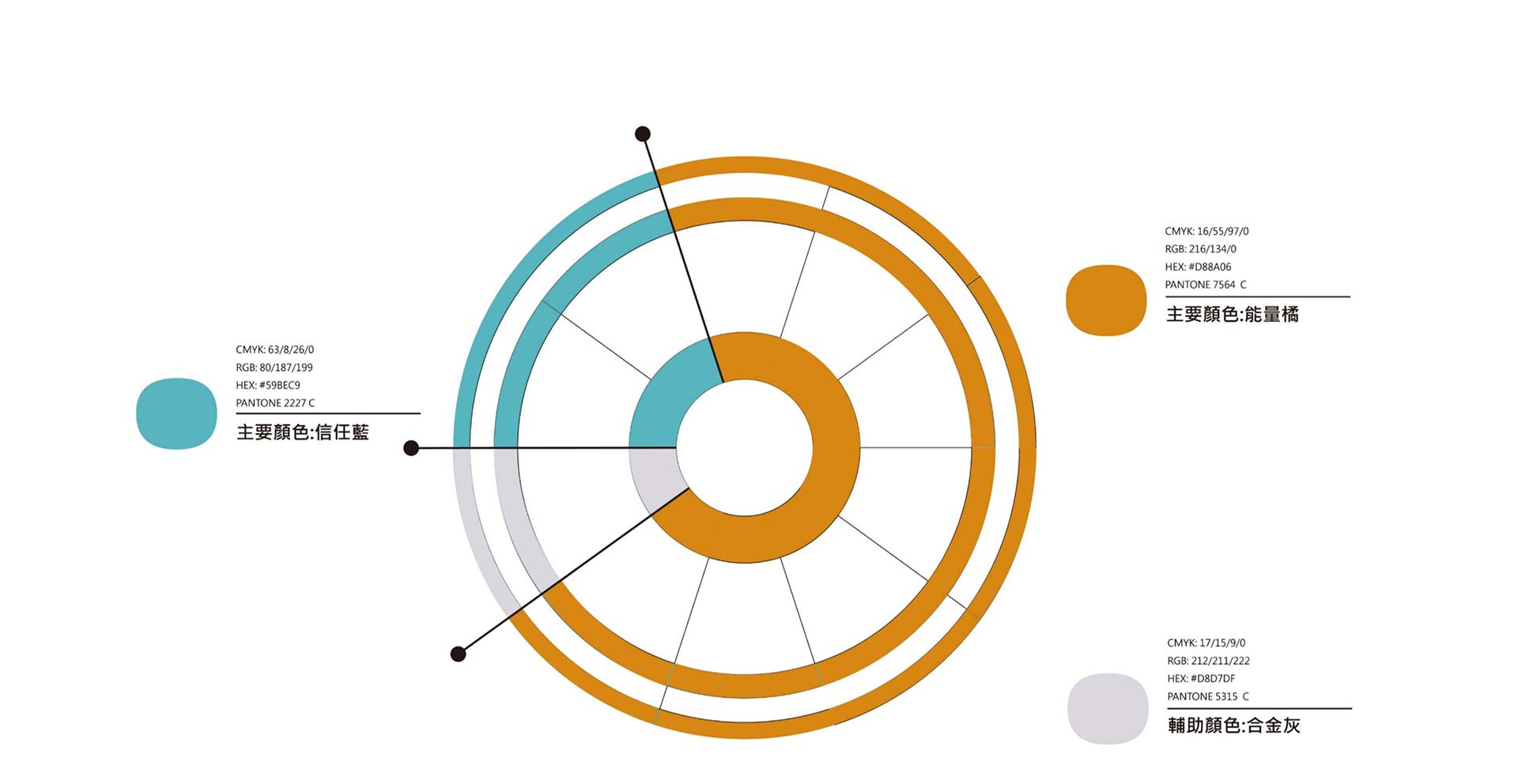 標準色選用「能量橘」與「信任藍」,代表日出與日落時分,日與夜交叠的兩段時間,在這一天兩次的神奇時刻里,人們隔著一面窗,也能感受到溫暖、交融、啟發,體驗在冷熱之間穿梭的關系,感受溫度嚴謹而有效率地在室內及室外空氣中流動,發現新時刻的崛起與改變。