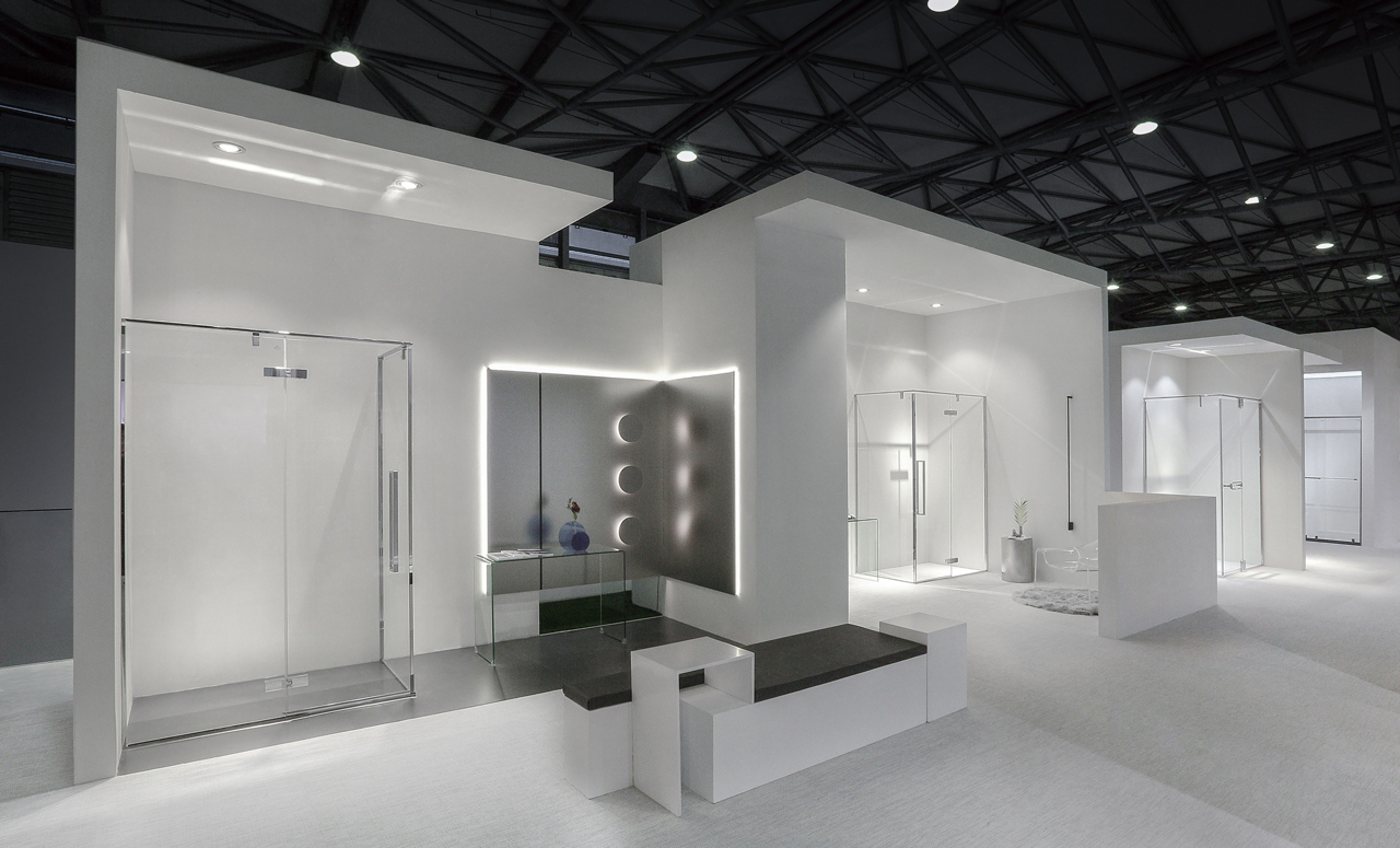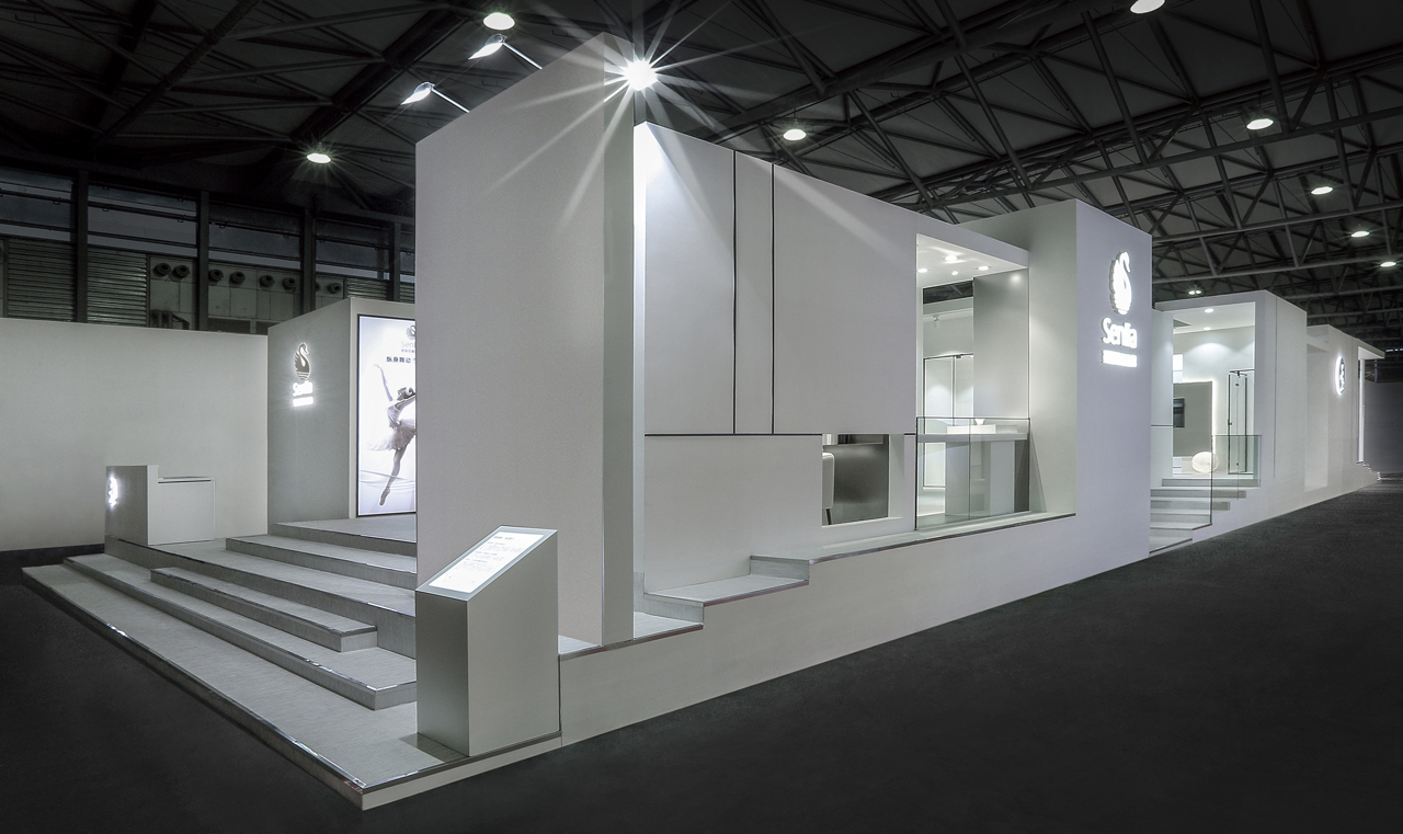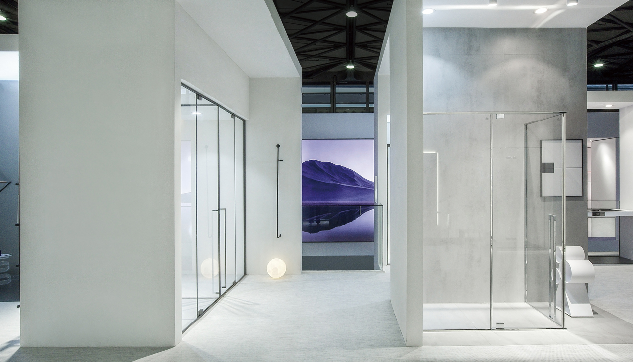聖莉亞是當前大陸淋浴房行業中最具影響力的品牌,也是最早展開淋浴房自主設計研發、生産和銷售的大型衛浴企業,其洗浴產品以高設計感、高品質、高性價比的特色聞名。歷經多年發展,聖莉亞如今已是產品遍布三十多國,年產值超過30萬套的淋浴房品牌。而洗浴文化歷經長時間演進,除了是外在的身體清潔滌淨,同時也洗刷內在的俗世紛擾,無形中發展出一套具儀式感的流程與環境,形成精緻的洗浴文化。因此在2021年上海衛浴展,團隊便希冀將過去洗浴文化豐厚的人文底蘊融入當代設計,以此手法將不同階段下的浴場空間特色凝縮在展間中,藉由展場設計規劃中體現一個沐浴文化的「場浴復興」,讓參訪者透過空間感受一種彷彿沐浴其中,身歷其境的場所精神。
