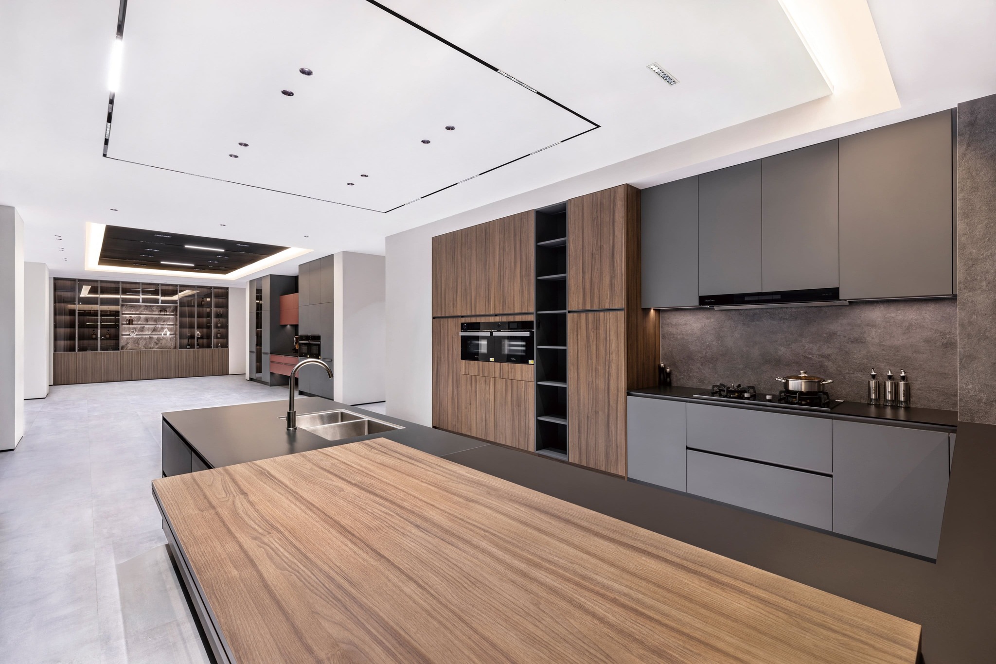 設計聚焦以品牌的質感調性凸顯產品設計。整體空間以純淨灰白色系為主調,去除裝飾性元素干擾,讓產品成為空間主角。局部牆面透過異材質搭配,區隔不同展區的情境與功能。間接照明手法與主燈配置相輔相成,真實呈現家具的色澤與質感。各區域的軟裝設計依據產品調性精準配置,使其情境化、生活化地置入空間中。從宏觀的空間策略到微觀的材質細節,憑藉設計將品牌的綠色基因、工匠精神與當代美學融為一體,讓展廳不只是靜態的展示場,更是講述品牌生活哲學的載體,啟發美好生活靈感,串聯過去與未來,塑造邁向百年願景的空間節點。