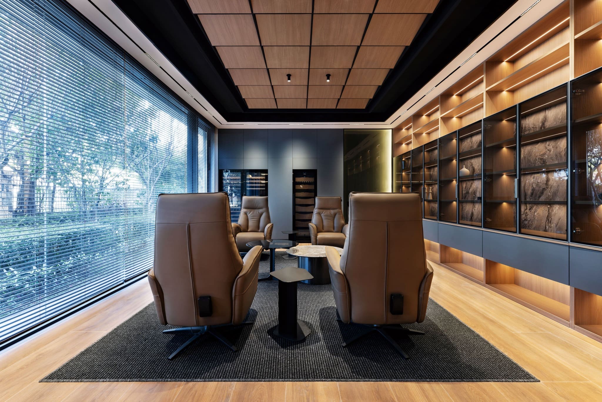 左右家居作為中國客廳文化的引領者,歷經數十年發展,早已成為中高端家具的先鋒品牌。秉持「以工匠精神締造綠色優品」的核心信念,左右家居以綠色、環保、舒適著稱,專注於提供客廳、餐廳及臥室空間的一體化解決方案。面對新世代與輕時尚潮流興起,品牌持續追求當代性演繹,而總部展廳的佈建,標誌著品牌由製造導向轉向品牌敘事的全面升級,也展現出自身對新興市場的敏銳洞察。此地作為品牌的核心展示空間,承載著傳遞品牌價值、與消費者及行業對話的重要使命,在「七分流量,二分限量,一分引流」的規劃策略下,打造沉浸式的品牌體驗情境。